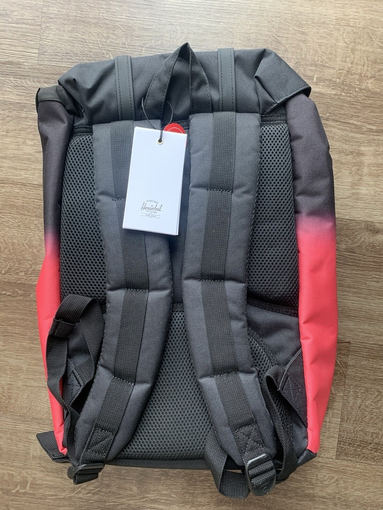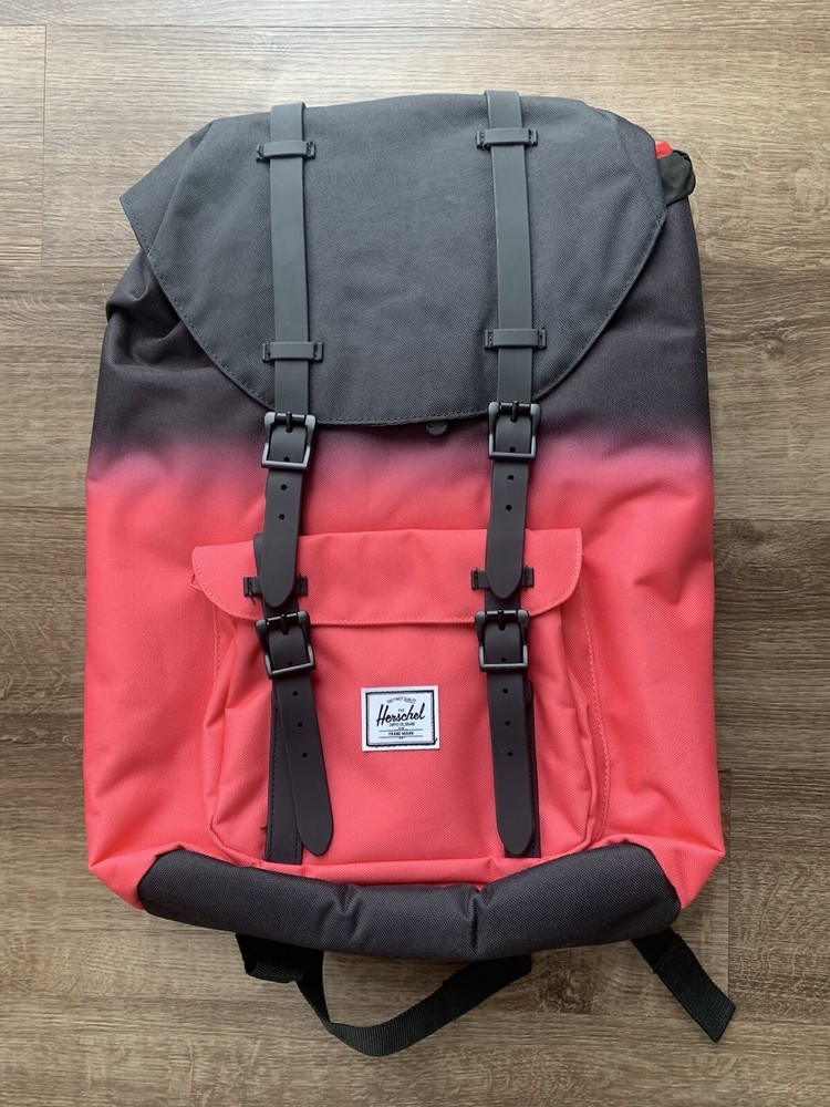 Elevate your style with this sleek Herschel Supply Co. Little America backpack in a striking Calypso Coral Gradient design. Crafted from durable polyester material, this backpack is perfect for everyday use and boasts a spacious mid-volume capacity to accommodate all your essentials. The black colorway adds a touch of sophistication to this unisex backpack, making it a versatile accessory for any fashion-forward individual. Featuring the iconic Herschel Supply Co. branding, this backpack is a must-have for any style-conscious person. The backpack boasts multiple compartments and pockets to keep your belongings organized, while the adjustable straps provide a comfortable fit. Whether you're heading to school or embarking on a weekend adventure, this Herschel Supply Co. Little America backpack is the perfect accessory to complete your look.