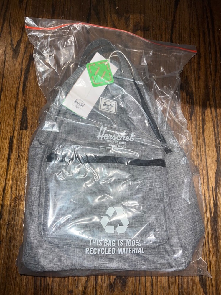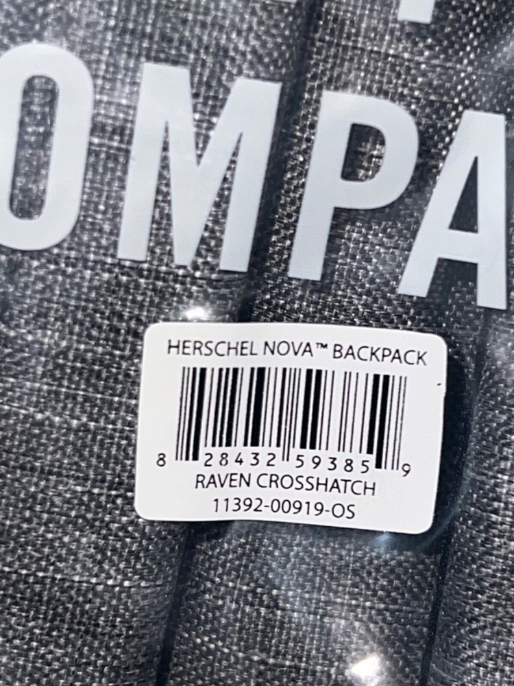 Brand new in original packaging! Size: Standard 18L Color: Raven Crosshatch Built to go. Made from Herschel's 100% recycled EcoSystem™ fabrics, the Nova Backpack comfortably carries the essentials you need to move through busy days. Features: EcoSystem™ recycled fabrics 13″/14″ laptop sleeve Water Bottle Pocket