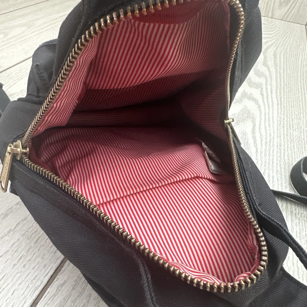 This Herschel Nova Mini Backpack is a stylish and functional accessory for any casual occasion. The bag is made of durable canvas material and features a zip closure, adjustable straps, and double handles for easy carrying. The gold hardware accents and red stripe inside add a touch of elegance to the design. The bag is lightweight and has a capacity of 6 inches in width, 11 inches in depth, and 13 inches in height with top handles. It also has multiple pockets for convenient storage. Whether you're running errands or going out with friends, this backpack is a great choice.