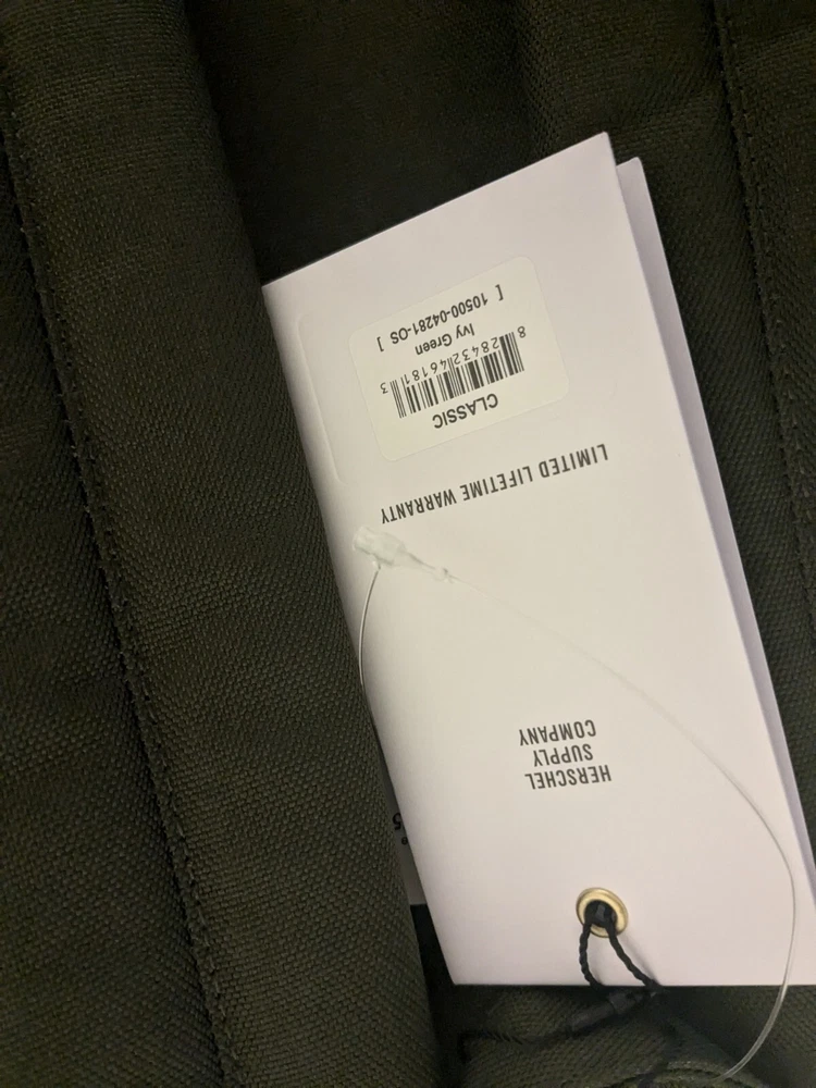 The Herschel classic backpack in Ivy Green is a timeless addition to any wardrobe. This standard size bag features a solid pattern with a zip closure, made from durable Otter material. The backpack has a classic design with a modern twist, perfect for everyday use. The canvas, cotton, and fabric lining provides comfort and durability, while the polyester and nylon handle/strap materials ensure easy carrying. Whether you're heading to school, work, or on a weekend adventure, this Herschel backpack is both stylish and functional. Get yours now with fast shipping!