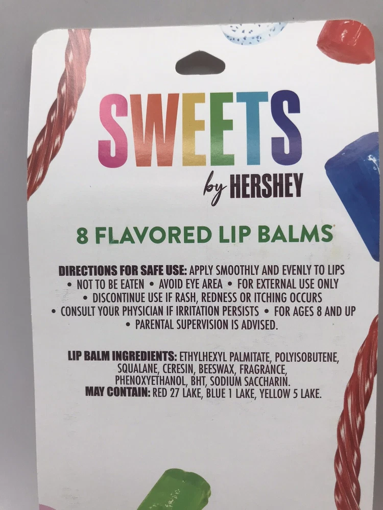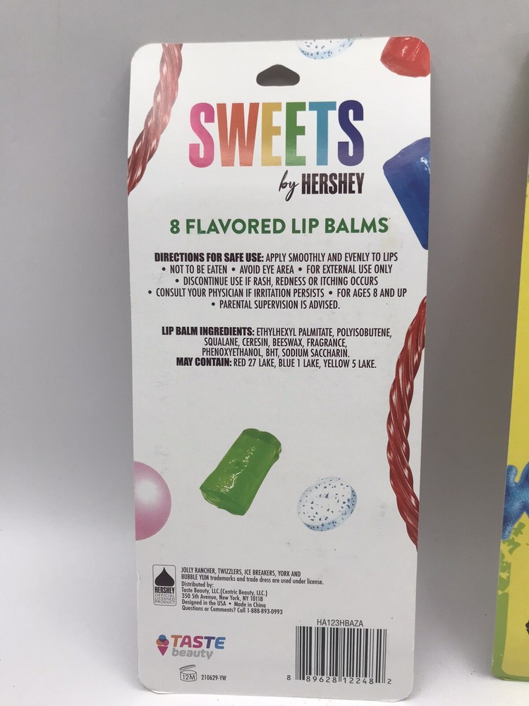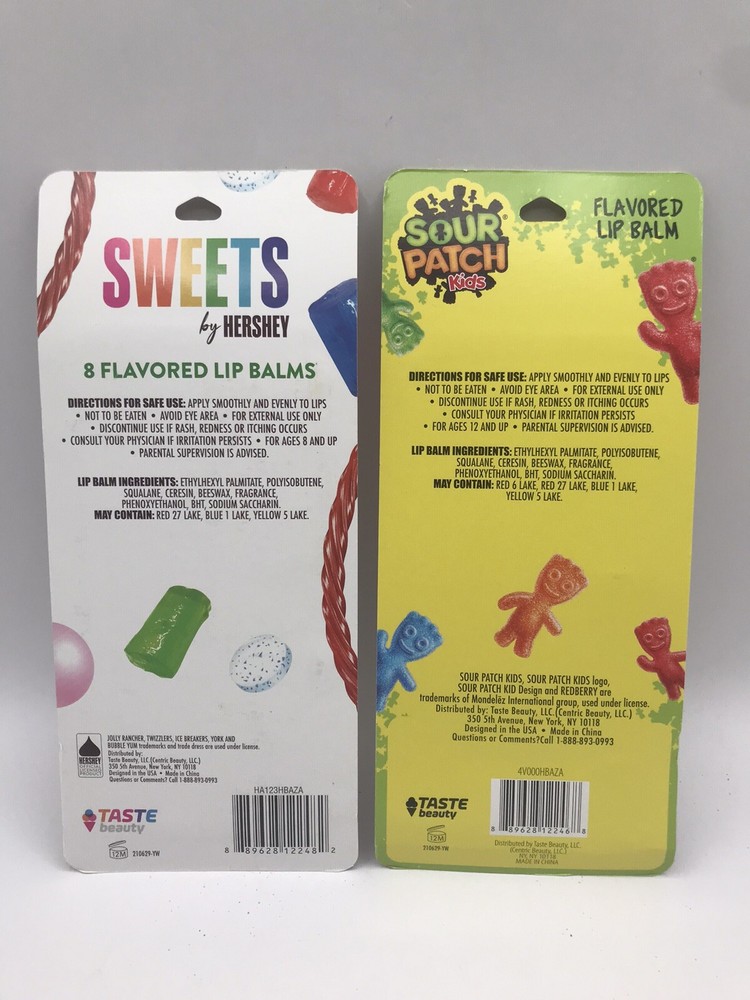 NEW Lot of 2 Flavored Lip Balm 8 Ct Sets ~ Hershey Sweets and Sour Patch Kids. New in original package. No return on this item.