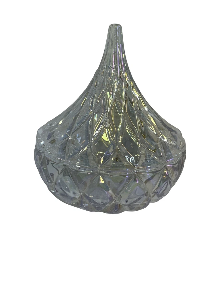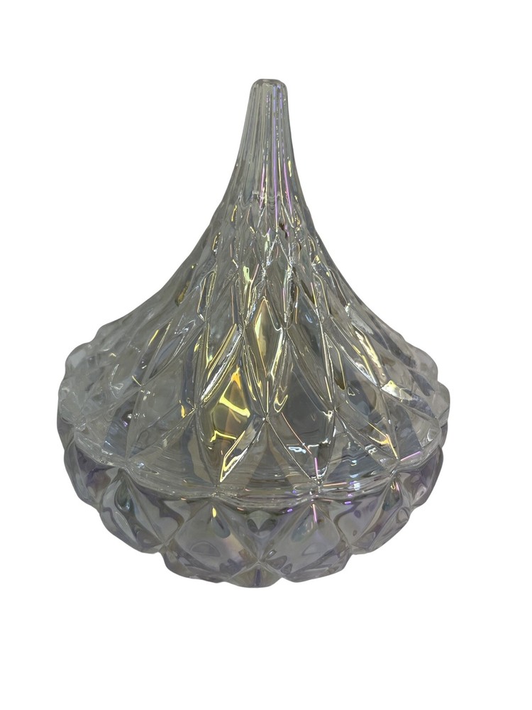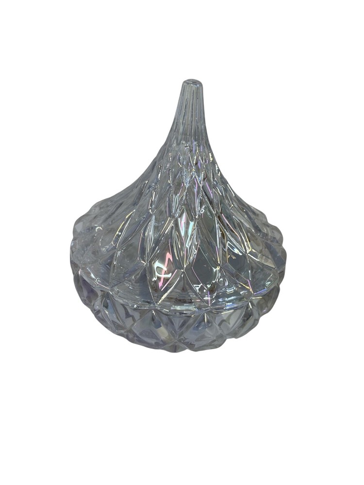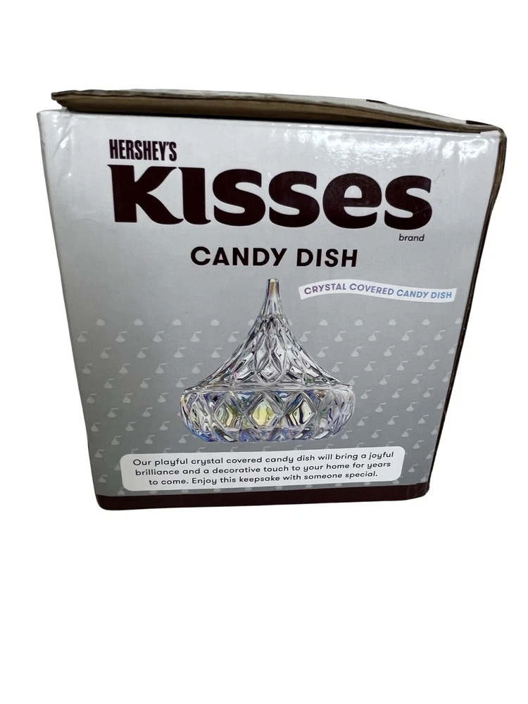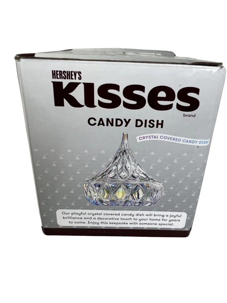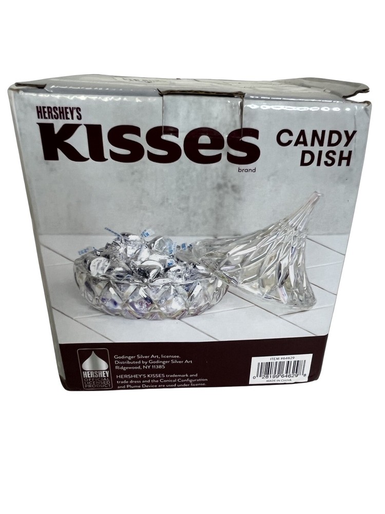 Hersey's Kisses Godinger Clear Crystal Candy Dish 5.5 in tall Original Box Our playful crystal Covered candy dish will bring a joyful brilliance and a decorative touch to your home for years to come. Enjoy this keepsake with someone special. New In Box Please contact me with any questions