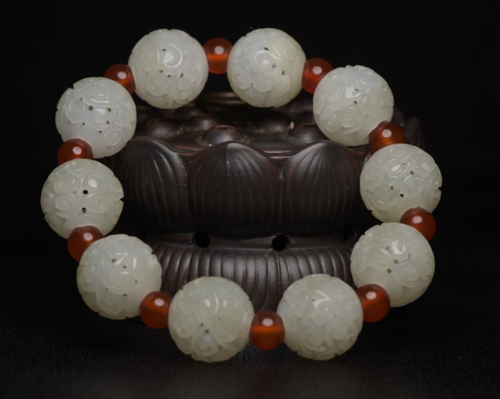 $ 41.71Exquisite Chinese Natural Jade Carved Pumpkin Beads Tassel Bracelet