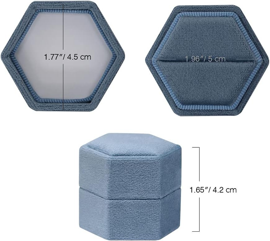 This hexagon velvet ring box is absolutely stunning! The ocean blue color is rich and elegant, and the soft velvet lining keeps jewelry safe. Perfect for engagements, weddings, or as a keepsake—it’s beautifully handcrafted and feels luxurious. Love the polished finish and compact size—great for gifting or storing a special ring!