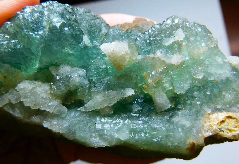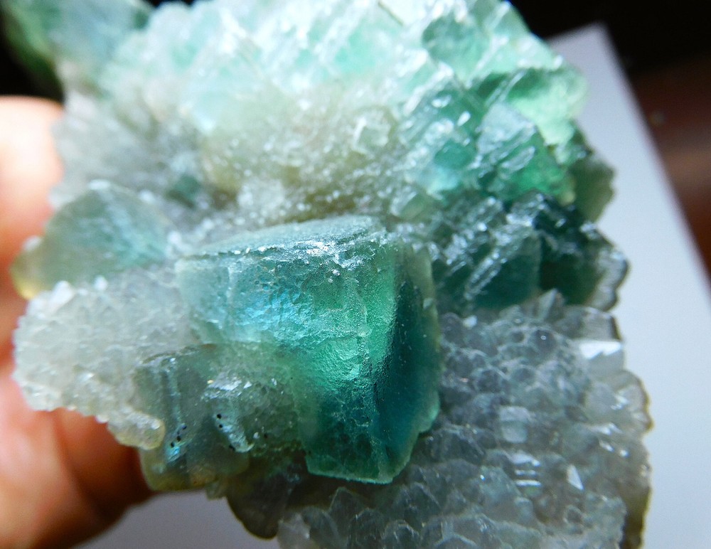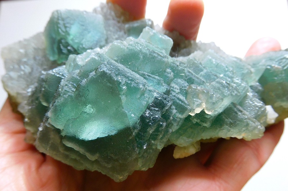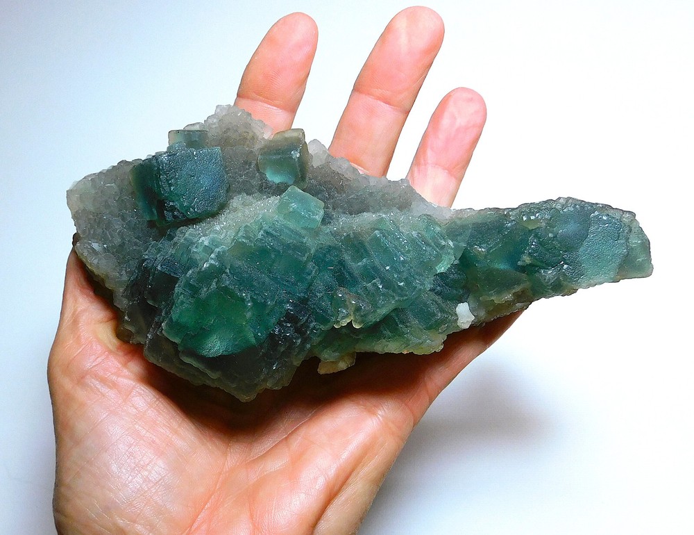 This absolutely stunning specimen is from Mongolia. Teal cubic fluorite crystals are formed with tiny smoky crystals and calcite. This is a nice size specimen. Absolutely stunning piece for your collection. More than 1lb. Size: 6" x 3 1/4" x 2 1/4" Wt. 456 g. Please message me for more info or for metaphysical properties. Photos are zoomed in to show details and may appear very large in the photos. Please see above for size. COMBINED SHIPPING is available automatically at checkout. I cannot hold items after you pay. If you wish to combine, ALL items must be paid for at the same time. K-1