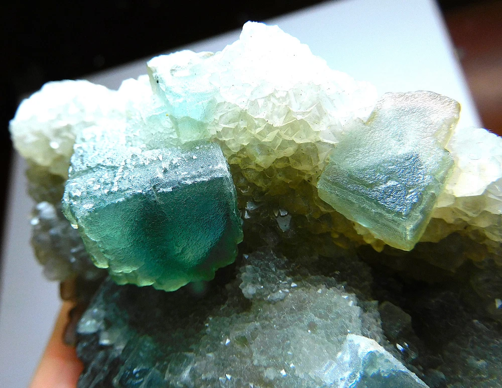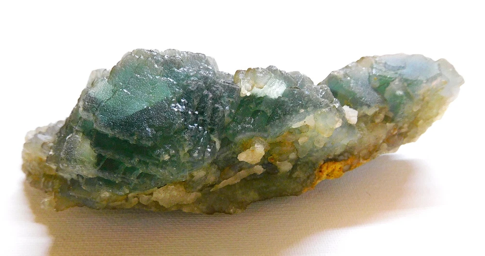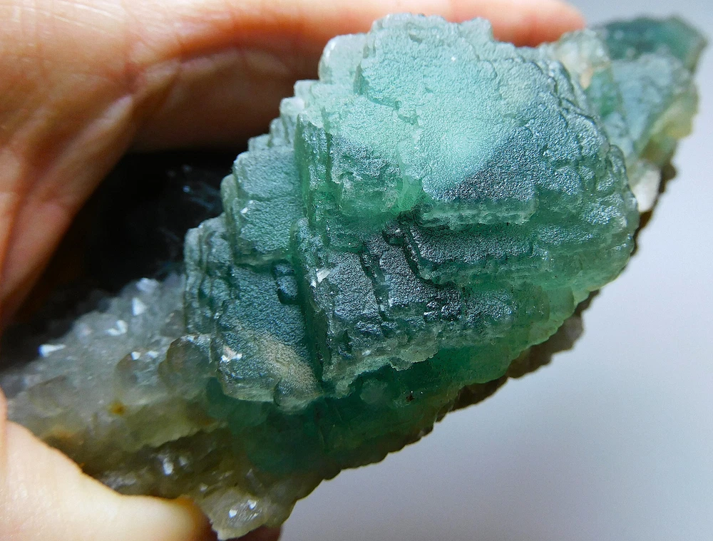 Hexagonal Blue Green Fluorite with Calcite Crystals from Mongolia 484g