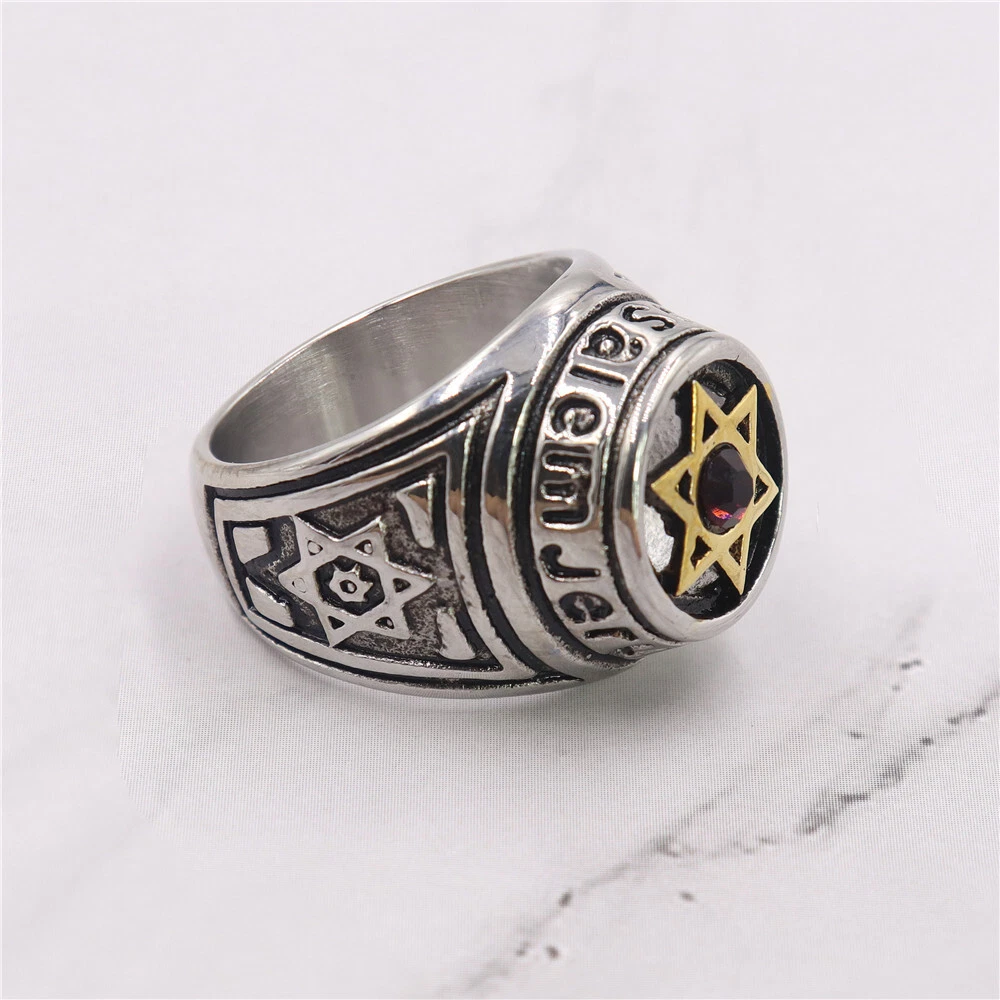 Hexagram electroplated diamond inlaid gemstone ring for men and women