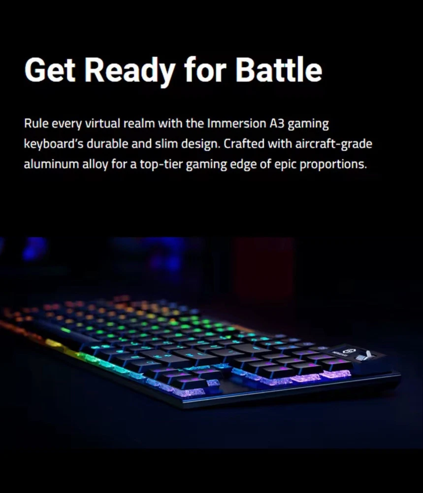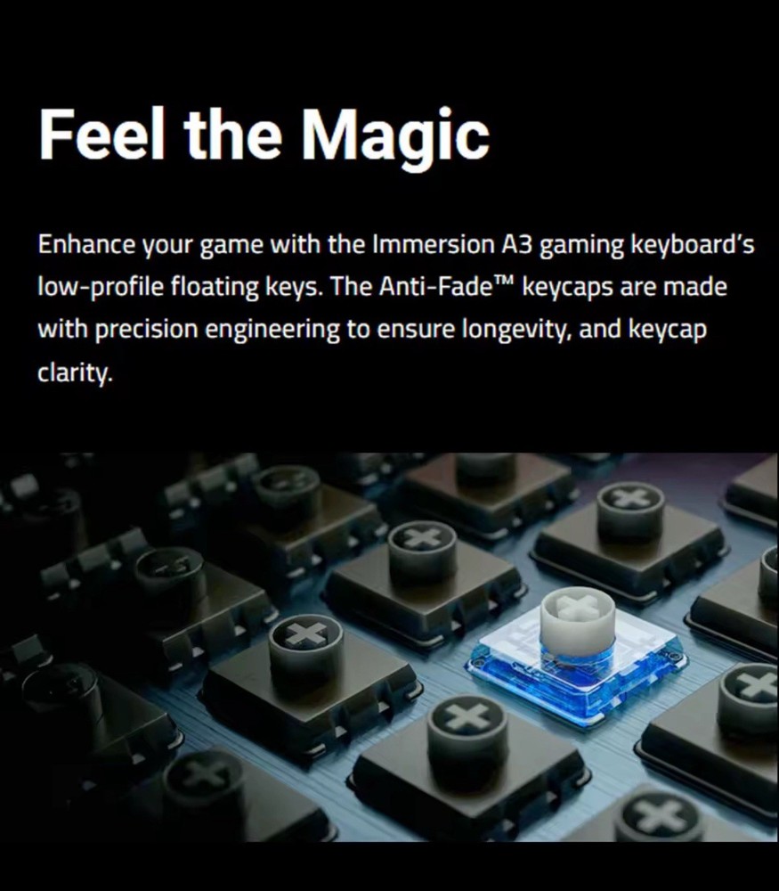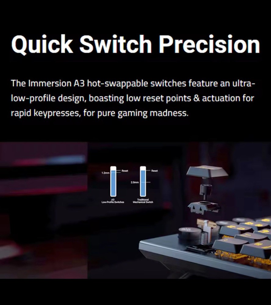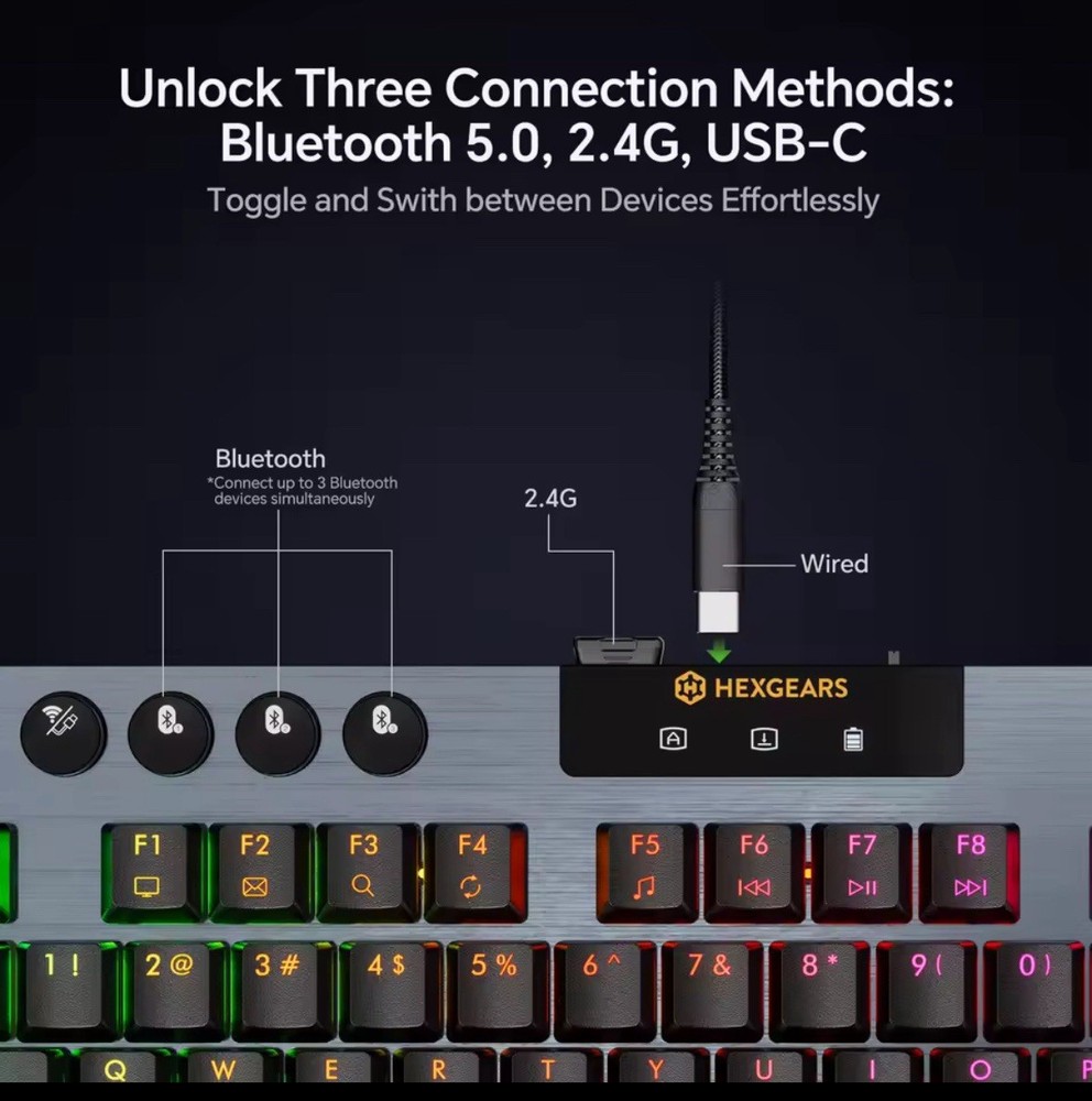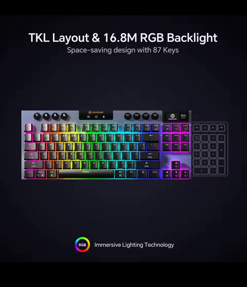 This keyboard is a dream for typists and gamers alike! The Hexgears Immersion A3 TKL feels amazing with its satisfying clicky switches, and the wireless options make switching between devices effortless. The backlit keys look sleek and help in dim lighting, while the compact design saves desk space. The build is solid, and the battery life is impressive. Definitely worth it for anyone wanting a premium mechanical keyboard!