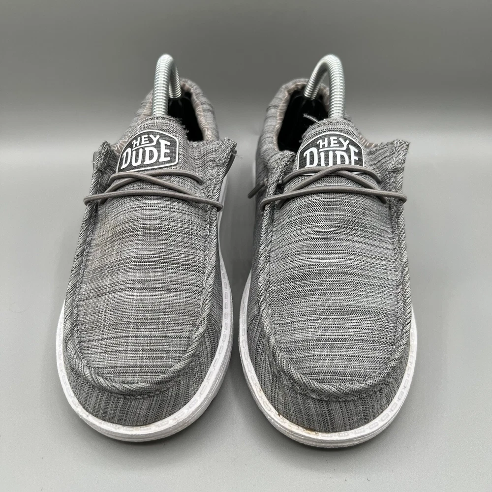 Hey Dude Wally Youth GS 3 Stone Gray Linen Blend Slip On Shoes 40159-270 Shoes are in good pre-owned condition. No defects but does have a couple light marks around the shoes (all photographed). Smoke free and pet free home. We list new stuff everyday! Feel free to send offers anytime! Please review all pictures and ask any questions you’d like before purchasing! Shipping next business day! The Hey Dude Wally Youth GS 3 Stone Gray Linen Blend Slip-On Shoes are designed for boys in US shoe size 3. These lightweight and comfortable shoes feature a slip-on style with a stretchy upper material made of linen blend in a stylish stone gray color.