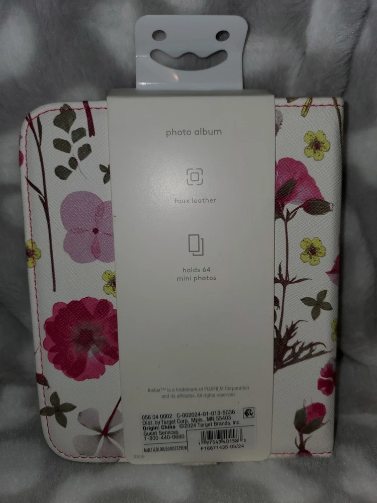 The Heyday Instant Pocket Mini Photo Album is designed to hold 64 standard size 2.25" x 3.25" photos, making it perfect for storing trading cards or small photographs. The album features a floral design on its leather cover and is equipped with 360 acid-free toploaders/card holders to keep your items protected and organized. With a clear finish, this compact and stylish photo album by Heyday offers a convenient way to display and store your cherished memories.