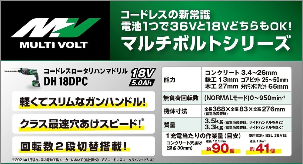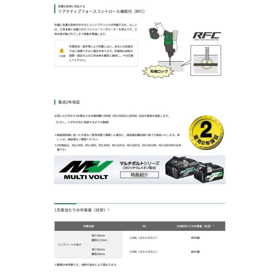 Country of Origin: Japan Item Weight: 3.5kg Color: Green gtin13: Does not apply Brand: HiKOKI Type: Rotary Hammer Drill Battery Included: No Speed: 950 RPM Item Width: 83mm Battery Technology: Lithium-Ion (Li-Ion) Battery Capacity: 5 Ah Number of Batteries: 1 MPN: DH18DPC(NN) Chuck Type: Keyless Item Length: 368mm Power Source: Battery Voltage: 18 V Item Height: 276mm Motor Type: Brushless UPC: Does not apply Model: DH18DPC(NN)