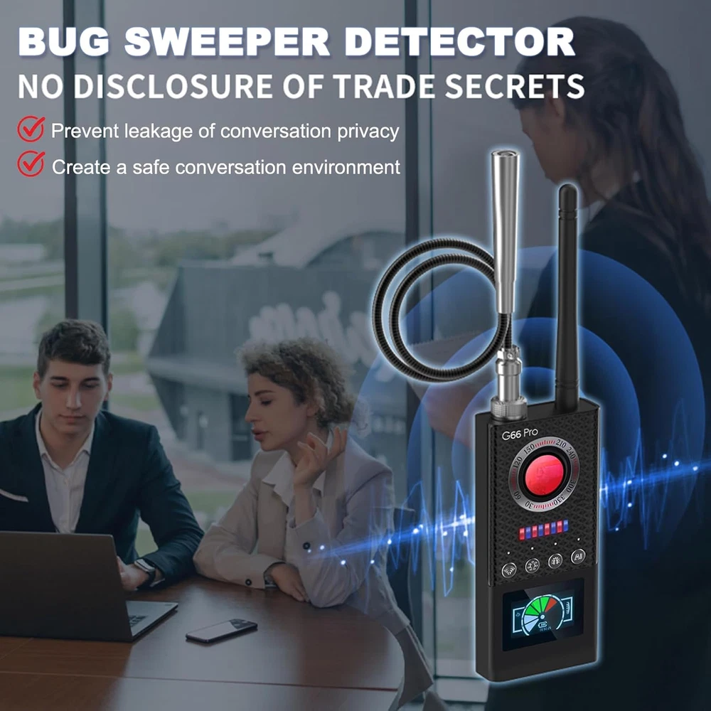 Hidden Camera Detectors, G66 Pro Hidden Camera Finder with LED Display, Magnetic Professional privacy protection: The GUMOZU series G66 Pro hidden camera detector is a professional-grade hidden camera and bug detector which adopts advanced high precision security level chip to fully meet the protection requirements of higher security grade that the G9 series personal protection grade cannot meet. Brings you more peace of mind Widely used: G66 Pro hidden camera detector with 4 detection modes. It can scan for hidden cameras, detect eavesdropping and find GPS tracker devices around you. Means bug detector, hidden camera detector, eavesdropping device detector, GPS detector you will get at the same time. A great gift choice for the one you care about Hidden camera detector for travels: With its own optical lens, it is easier to find hidden cameras without fear of light. Prevent eavesdropping, candid photos and personal privacy leaks. Suitable for professionals, personals, travelers and businessmen. It helps you find hidden cameras in hotel, Airbnb, bedrooms, fitting rooms, locker rooms, private place etc. Find hidden bugs and listening devices in the office and conference rooms, gps detector for vehicles User friendly: Button design, easy to switch between different modes and adjust different detection sensitivities. It offers sound alarm and vibration alarm for your choice. The clear LED display helps you to easily check the sensitivity, alarm mode, detection mode and status, battery level and more; it is more user-friendly and understanding hidden camera and bug detector with step by step user manual 3.7 inches x 6.65 inches x 2.32 inches. Weight: 12.3 oz Unit Count 1.0 Count Connectivity Protocol Type-C Compatible Devices detect hidden cameras, detect listening devices, detect hidden microphone, detect GPS trackers, etc. Room Type Office Are Batteries Required Yes Antenna Location Indoor/Outdoor Video Capture Format MPEG-4 Indoor Outdoor Usage Outdoor, Indoor Zoom Optical Zoom Model Number GUMOZU series G66 Pro Wireless Technology C-Type Focus Type Manual Focus Connectivity Technology Type-C Built-In Media G66 Bug Detector*1, Induction Antenna*1, Strong Magnetic Probe*1, Charging Cable*1, Instruction Manual(English)*1 Recommended Uses For Product Indoor/Outdoor Additional Features Professional Hidden Devices Detector, Portable and lightweight for carry out, 4 Detection Modes, Sensitivity Adjustable, Easy to use Special Feature function(f) {var _np=(window.P._namespace("DetailPageProductOverviewTemplatesJava"));if(_np.guardFatal){_np.guardFatal(f)(_np);}else{f(_np);}}(function(P) { P.when('A').execute(function(A){ A.on('a:truncate:po-attribute-truncate-4:updated', function(data) { var isTruncated = !data.truncateInstance.getIfTextFits(); var seeMoreElement = document.getElementById('po-attribute-see-more-id-4'); if(seeMoreElement) { seeMoreElement.style.display = isTruncated ? '' : 'none'; } }) }); })); Professional Hidden Devices Detector, Portable and lightweight for carry out, 4 Detection Modes, Sensitivity Adjustable, Easy to use See more Model Name GUMOZU series G66 Pro Power Source Battery Powered Controller Type Push Button