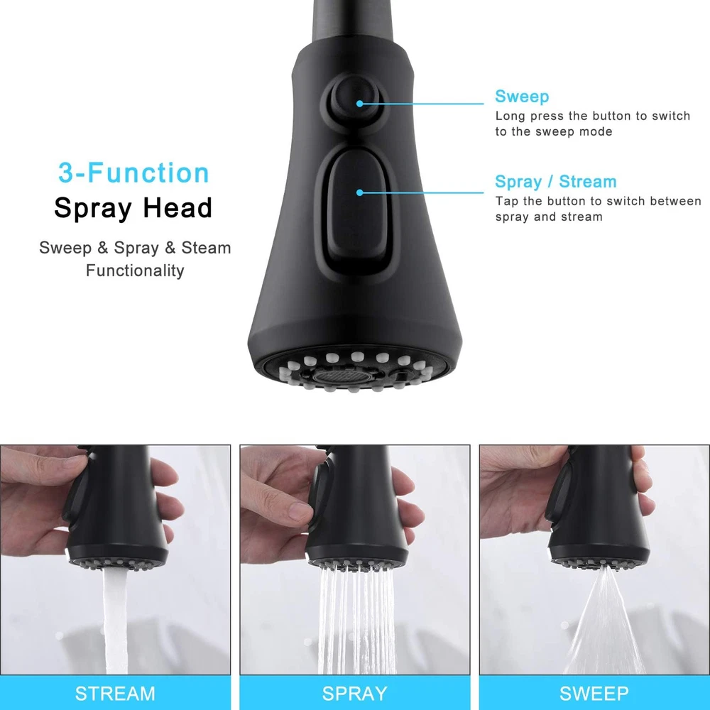 Store New Arrivals Add to Favorite View Feedback Contact Commercial Kitchen Sink Faucet with Pull down Sprayer High Arc Fit for One & 3 Hole W/Deck Plate Single Handle Industrial Style Matte Black Description Item model number SK5002PA Style kitchen faucet Spout Height 6.5 Inches Hole Count 3 Spout Reach 10 Inches Warranty Description lifetime Hose Length 25 Inches Batteries Included? No Usage Bar, Inside, Outside, Laundry, Garage Sink Handle Location Right Number of Pieces 1 Batteries Required? No Finish Matte Black Product Dimensions 24.41"D x 2.95"W x 13.58"H Material Stainless Steel Shape Gooseneck Installation Type Single-Hole, Deck-Mount, Screw-In Model Name kitchen faucet Finish Type Matte Black Included Components Sprayer, Deck Plate, Installation Hardware Item Package Quantity 1 Spout Design Single Handle Number of Handles 1 Cutting Diameter 1.25 Inches Item Weight 1.5 pounds Is Electric No Special Features Water efficient, 360-Degree Rotation, Easy Installation, Kitchen faucet, Multifunctional Sprayer Modes Assembled Diameter 1.25 Inches Special Feature function(f) {var _np=(window.P._namespace("DetailPageProductOverviewTemplatesJava"));if(_np.guardFatal){_np.guardFatal(f)(_np);}else{f(_np);}}(function(P) { P.when('A').execute(function(A){ A.on('a:truncate:po-attribute-truncate-9:updated', function(data) { var isTruncated = !data.truncateInstance.getIfTextFits(); var seeMoreElement = document.getElementById('po-attribute-see-more-id-9'); if(seeMoreElement) { seeMoreElement.style.display = isTruncated ? '' : 'none'; } }) }); })); Water efficient, 360-Degree Rotation, Easy Installation, Kitchen faucet, Multifunctional Sprayer Modes See more Part Number SK5002PA Mounting Type screw-in Certification WaterSense Color Matte Black Handle Material Stainless Steel Recommended Uses For Product Kitchen Handle Type Lever Size Upgrade AQUABLADE Design - Spout Height 8", Spray Reach 9", Faucet Height 16.4", Spout Reach 10".Specially designed pull down sprayer creates a forceful blade of water, more powerful than spray mode. Now it is very convenient to sweep away stuck-on food from your dishes or directing food and dirt from sink corners to the drain. Three Working Modes & Pull Down Sprayer Head - Our kitchen faucet with 3 flow setting (STREAM/ SPRAY/ SWEEP), stream for filling water,spray for strong cleaning wash, powerful sweep blade to clean dishes. The Kitchen Faucet Sprayer Head is Neoperl ABS areator wich can be removed by a coin easily for clean and . Easy to Set Up - The kitchen faucet easy to setup in few minutes with the install manual. The single handle sink faucets package include all the accessories, thoughtful packaging independently designed, full sponge wrapping protects all accessories from damage, these kitchen sink faucet is the perfect partner for you. Sturdy & Rust Resistant -Our single handle kitchen faucet made of 304 stainless steel, high quality ceramic cartridge has passed 1000,000 cycle testing to ensure that it will lasting over 20 years. Superior corrosion & rust-resistant finish prevent dirty from sticking to faucet surface, clean faucet by cloth is enough in Daily Use. Elegant Design & Easy to Match - Kitchen faucet with sleek industrial style offer contemporary good looks, the pull down sink faucet was very easy matching with the rest of your furniture.Proper faucet size and water outlet angel fit most of sinks,save your time to make choice. About Manufacturer: We has been specialized in kitchen supply for more than a decade. We focus on item quality, function,material, and style to make personalized kitchen product more available to users. We provide affordable and durable items to realize 100% customer satisfaction. Product Feature: √Enjoy unparalleled value of the modern convenience and flexibility of put-out kitchen faucet. √Easy to install with a wrench, no need plumber, save money and time. √Durable: Brushed Nickel Finish, resists tarnish and corrosion from daily use √Pull Out Sprayer and 360 Degree Rotation: Offer more room pots/pans and superior clearance for sink. √Three function spray wand allows you to easily and ergonomically switch from spray to stream to sweep.(Higher pressure when spraying,less splashing). √Stainless steel kitchen faucet include eco-friendly,lead-free materials,complied with NSF/AB1953 lead-free regulation, and certified by IAMPO, assure your family healthy. Product Specifications: -Material: Solid Stainless Steel -1 or 3 hole installation -Overall height: 16.4" -Spout Height: 8" -Spout Reach: 9" -Stainless steel deck plate:10" -Sprayer Head:ABS Plastic -Handle Material: Zinc Alloy -Valve: Ceramic Valve -Water Mode: Stream/Spray/Sweep Package Including: 1 x Kitchen Faucet 1x hot and cold inlet water pipe 1x Installation instruction After-sales commitment: Any quality problem within the first month, you can get full and a new kitchen faucet. Any quality problem within 1 month, you can get a new product. Any product issues, please feel free to through . We will reply within 24 hours. We always strive for 100% product satisfaction. ABOUT US We offer the best prices around on high quality products. Our E-store includes media such as books, movies, music and games while offering electronics, toys, sporting apparel, clothing, tools, general home, garden items and more. SHIPPING We are always working hard to ensure your package arrives as soon as possible. Please understand that some factors like weather, high postal traffic, and the performance of shipping companies are outside of our control. We offer free shipping to the lower 48 states and ship within 2 business days of payment, usually sooner. We do not accept P.O. Boxes. Please provide a physical address. For shipping outside of the continental USA, we only use eBay's Global Shipping Program.The item is shipped to KY and then sent to the rest of the world. International customers are responsible for all duties and taxes. Continue to check out in order to calculate cos