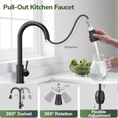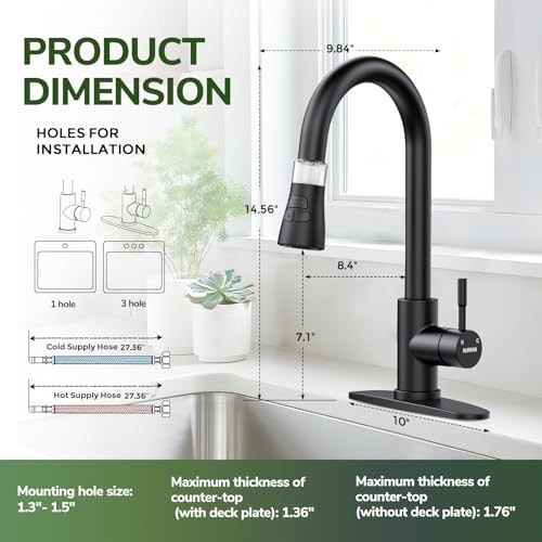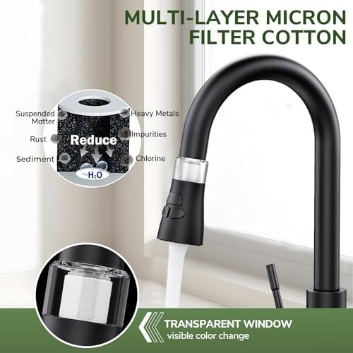 Menu 1. We require immediate payment. 2. We currently accept payment via eBay managed payments only. 3. Once payment is cleared, we will dispatch your shipment within 1-3 business days. Please refer to the "Shipping" tab for more information regarding shipping speed to your destination. Kitchen Faucet with Pull Down Sprayer, Matte Black Water Filter Faucets, High Arc Single Handle Kitchen Sink Faucet 1 or 3 Hole, Utility Sink Faucets with Deck Plate for Farmhouse Rv Wet Bar Product description Durable Kitchen Faucets: kitchen faucet is made of lead-free SUS 304 stainless steel and features a premium cartridge that prevents leakage and ensures durability. The surface is easy to clean, simply wipe with a damp cloth to remove stains. Efficient Operation: Pull-out design easily reaches every corner of the sink for all-around cleaning. Makes everyday cleaning a breeze. Controlled by the gravity ball, the nozzle retracts smoothly and precisely. Multi-function Spray Head: The sink faucet combines four spray modes (Stream, Spray, Sweep, Pause), to meet your different needs. Stream mode provide soft and splash-free; Spray mode make cleaning effortless; Sweep mode rinses out stubborn stains; Pause mode is paused by quickly pressing and releg the button. Water Filter Cotton: Our filter faucet has a transparent design on the cartridge housing part, which is convenient for you to observe the filtration effect and cartridge usage. When the cartridge turns yellow or black after a period of time, simply replace the cartridge to maintain better filtration. Easy Installation: This faucet is designed for both 1-hole and 3-hole installations. It includes hot and cold water supply lines and all necessary mounting hardware. Detailed user manuals and installation videos are also provided to save you time and effort. If t's any problem, please feel free to contact us. PLEASE MESSAGE US IF YOU HAVE ANY OTHER QUESTIONS, AND MANY THANKS FOR READING ALL OF THIS. Copyright ©#. All Rights Reserved.