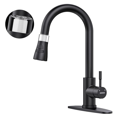 High Arc Matte Black Kitchen Faucet with Pull Down Sprayer and Water Filter