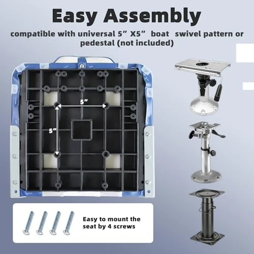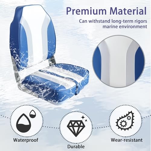 Return Policy Fast Delivery Trusted seller Boat Seats High Back 2 Pack, Folding Bass tracker Boat Seat for Fishing Jon Pontoon with Stainless Steel Screws, White/Blue/Grey Product Description Ergonomic Design: boat seat is filled with thickened ultra-high-density sponge has good rebound and can perfectly fit the curve of the body. The curved ergonomic back and widened seat design provide comfortable support. It can reduces your fatigue caused by sedentariness Long-Term Durability: The boat chair is constructed with heavy-duty Marine-grade vinyl upholstery that is tough enough for long-lasting use; The boat seat is waterproof, wear-resistant, and easy to clean after use; With tight stitching, it can effectively prevent tears or fraying Easy to Fold and Store: Equipped with flexible rust-proof aluminum alloy hinges,this fishing boat seat can easily fold in half, making storage on board easier;The tie-down strap makes it more convenient for latching; Plastic pads are added to protect the seat corners and can be removed after the installation Durable & Stable Design: The stable high-impact plastic frame endows this folding boat seat with a strong loading capacity of up to 250 lbs; The sturdy rust-proof aluminum alloy hinges can also prevent the backrest from bending; Perfect for fishing and boating Quick Installation: The bass boat seat is pedestal mounted, you simply bolt the seat to the base; Equipped with 4 locking screws located in the slots under the chair; Install on any standard 5'' x 5'' mounting bolt pattern; Fits most sizes of rotary joints or bases Shipping Returns Payment Shipping Shipping is FREE to all addresses other than APO/PO boxes in the lower 48 states. All our stock ships from US-based warehouses. Shipped via USPS or UPS (depending on location and package weight) Unless stated otherwise, all orders will ship within 24-72 hours of your payment being processed. Check our feedback to see the great reviews of FAST shipping we offer. Returns Seller does not accept returns Payment We currently accept payment via eBay managed payments only. Once payment is cleared, we will dispatch your shipment within 1-3 business days. Please refer to the "Shipping" tab for more information regarding shipping speed to your destination.