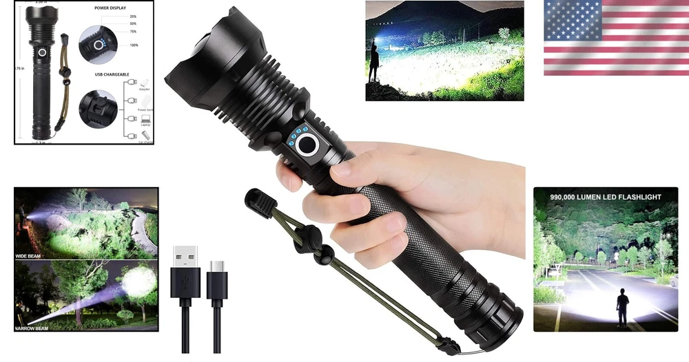 High Lumens Rechargeable LED Flashlight - 990,000 Lumens | 5 Modes & Waterproof ‹ › ‹ › ‹ › ‹ › ‹ › ‹ › ‹ › ‹ › ‹ › High Lumens Rechargeable LED Flashlight Experience Unmatched Brilliance: The ultimate in illumination with an astonishing output of 990,000 lumens , this flashlight lights up your surroundings like never before. Covering a distance equivalent to two football fields, it reaches an incredible range of 3280 feet (1000 meters) . Key Features: 5 Versatile Modes: Tailor your lighting needs with high, medium, low, strobe, and SOS functions, adapting effortlessly to any scenario. Rechargeable & Convenient: Equipped with a powerful 10,000mAh rechargeable battery, the flashlight provides exceptional power with flexible charging options via a Type-C input port and features a helpful power display for real-time battery monitoring. Durable & Reliable: Crafted from aeronautical aluminum, this flashlight is designed to withstand scratches, corrosion, and breakage. With an IPX7 waterproof rating , it thrives in adverse weather, making it the ideal companion for any outdoor adventure. Exceptional Longevity: Each LED lamp boasts a lifespan of over 100,000 hours with energy efficiency at 20% savings , ensuring low cost and high performance over many uses. Worry-Free Customer Service: With a 2-year free replacement service and 24/7 customer support, your satisfaction is our priority. Why Choose Our High Lumens Rechargeable LED Flashlight? Engineered for those who demand brightness, durability, and versatility, this flashlight stands out in its category. Whether you're exploring the great outdoors, preparing for emergencies, or simply need dependable lighting in your workshop, the high lumens flashlight guarantees exceptional visibility and performance. Don’t settle for mediocre lighting—experience the brilliance, choose reliability, and illuminate your world with confidence. Order your High Lumens Rechargeable LED Flashlight today! Shipping Free & Fast Shipping - We offer free shipping to most of the USA with a normal delivery time of 3-7 days. However, due to the current situation, additional delivery time (up to 3 weeks) may be required for some items. Alternative Carriers - We may use alternative carriers (e.g. USPS, FedEx, UPS, etc.) to ensure your package arrives safely and on time. Due to the use of multiple carriers, we are unable to provide a tracking number automatically. Handling Time - Orders are processed and shipped within 1-2 business days of receiving cleared payment. Shipping Restrictions - Shipping to Alaska, Hawaii, Puerto Rico, Guam, and other US territories may incur shipping charges or delivery restrictions. Please contact us before ordering, or your order can be refunded/cancelled. State Restrictions - There may be restrictions based on your state of purchase. For example, certain items may not be shipped to California due to state regulations. Contact for Tracking Updates - If you require tracking updates or have any concerns about the delivery of your order, please feel free to contact us, and we will be happy to assist you. Return 30-Day Hassle-Free Returns - We want you to be completely satisfied with your purchase. If you are not, you can return the item within 30 days of receiving it for a full refund or exchange. Easy Return Process - To start a return, simply contact us and we will provide you with a prepaid return shipping label and detailed instructions. Restocking Fee - There are no restocking fees for returns. However, the buyer is responsible for return shipping costs if the return is not due to a seller's error. Refund Processing Time - Refunds will be processed within 5 business days of receiving the returned item in its original condition. Payment We accept all major credit cards, PayPal, and Apple Pay for your convenience. Your payment information is secure and encrypted to ensure a safe and seamless transaction. Please complete your payment within 3 days of purchase to avoid any delays in shipping. Feedback Your feedback is extremely important to us. We strive to provide the best products and customer service possible. If you are satisfied with your purchase, please take a moment to leave us a positive review. If you have any concerns or issues with your order, please contact us before leaving negative feedback. We are committed to resolving any problems and ensuring your satisfaction. Contact Us If you have any questions or concerns, please feel free to reach out to our customer support team. You can contact us through the eBay messaging system. We are available Monday to Friday, 9:00 am to 5:00 pm EST, and we will do our best to respond to your inquiry within 24 hours. Thank you for supporting our small family business! UPC: Not Set Voltage: 5 volts Item Height: Rechargeable LED Flashlights Item Length: Rechargeable LED Flashlights Item Weight: 1 grams Item Width: Not Set Model: Not Set Lumens: 990000 lumen Number of LEDs: Not specified Unit Quantity: 2 Material: Aluminum,aeronautical aluminum Features: Handheld,Rechargeable,Waterproof,Power Display,Adjustable Light Modes,Adjustable Focus Brand: Unbranded Type: Flashlight Lighting Technology: LED Power Source: Battery Operating Range: 1000 meters MPN: Not Set Battery Technology: NiCad Number of Batteries: 2 Color: Rust Country/Region of Manufacture: Not Set IP Rating: IPX7 Operating Time: 10 to15 hours Number of Lights: 1-3 Unit Type: Not Set Personalize: Not Set