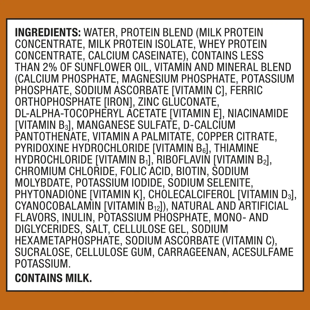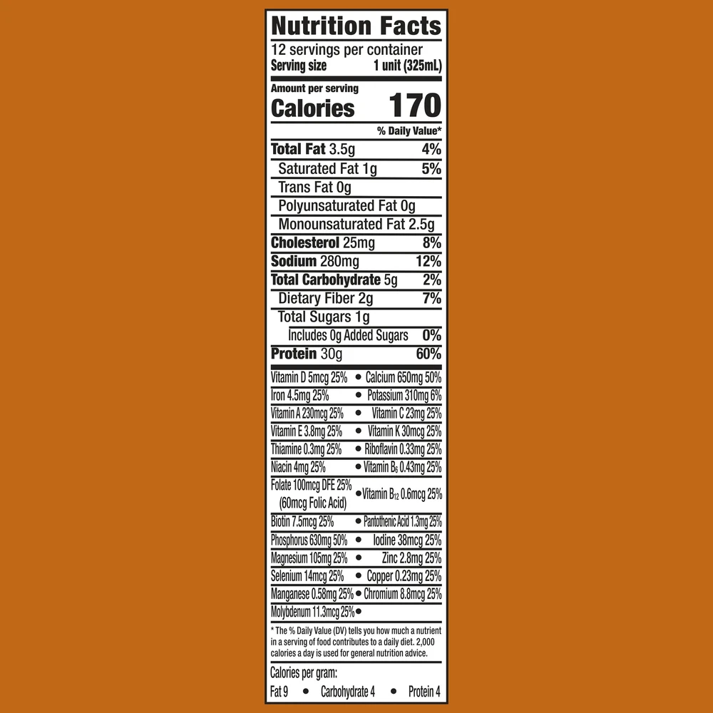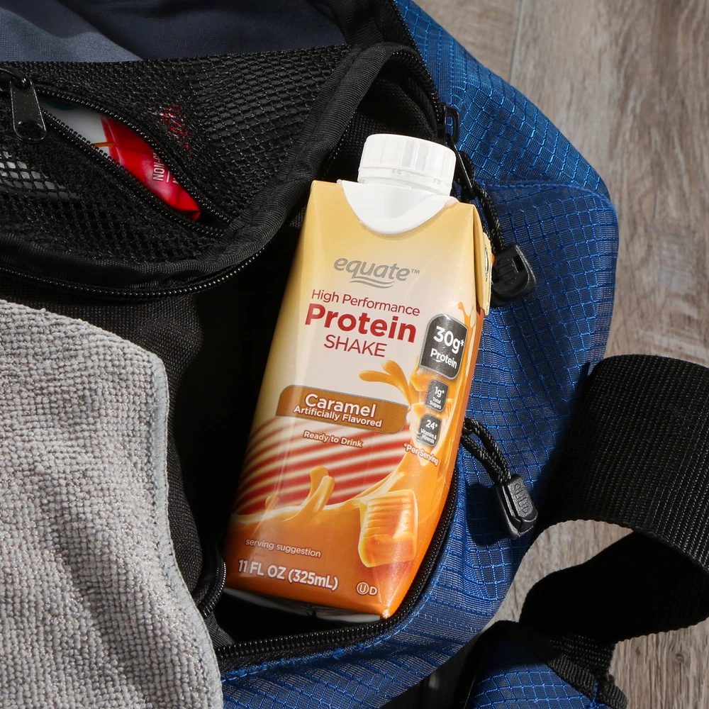 Product details Equate High Performance Protein Shakes are ready to drink and come in a variety of delicious flavors. These nutrition-packed shakes deliver 30 grams of protein, 24 vitamins and minerals, and only one gram of sugar per serving. Packed with iron, calcium, and vitamin D, these shakes are a nutritious option when you're trying to curb hunger or need something convenient while on the go. This pack comes with 12 protein drinks, so it's easy to stock up for continued enjoyment. Satisfy your appetite with the great taste of Equate High Performance Protein Shakes. Making the right health decisions can be challenging. With a complete range of products and simple solutions, Equate allows you to take care of your family with confidence. Equate High Performance Protein Shake, Caramel, 11 fl oz, 12 Count: Easy-to-drink shakes 30g of protein and 24 vitamins and minerals per serving Excellent source of iron, calcium and vitamin D Gluten-free beverage Delicious caramel flavor