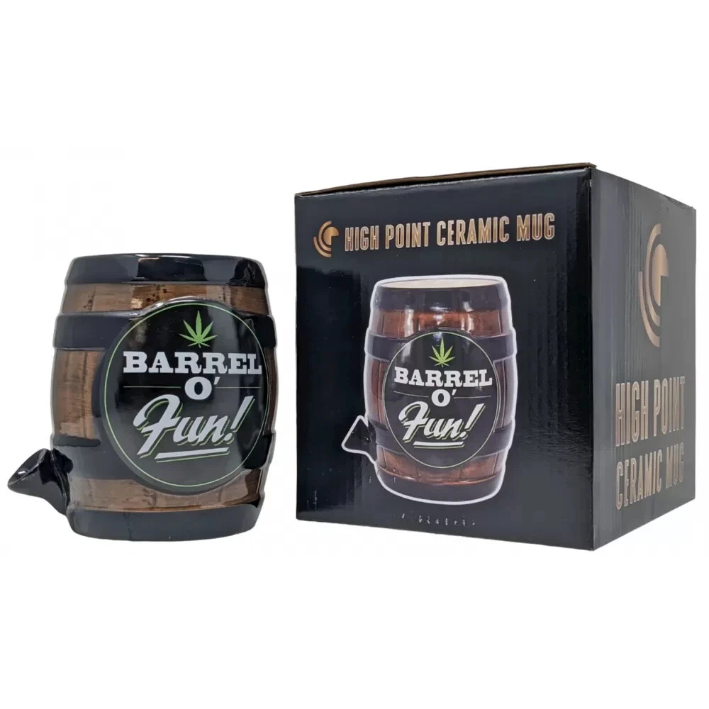 High Point Ceramic Barrel of Fun Mug Hand Pipe Product Description: The High Point Ceramic Barrel of Fun Mug with Built-In Feature is a uniquely designed novelty mug that brings rustic charm and practicality together. Shaped like a vintage wooden barrel with a glossy ceramic finish, this mug is perfect for those who appreciate creative and stylish drinkware. The detailed barrel design, complete with black metal-like accents, adds an authentic touch, making it a standout piece for any collection. Crafted from high-quality ceramic, this mug is durable, heat-resistant, and easy to clean—ideal for everyday use or as a unique gift for friends and family. Key Features: ✅ Rustic Barrel Design – A vintage-inspired ceramic mug shaped like a classic wooden barrel for a unique aesthetic. ✅ 2-in-1 Functionality – Serves as a stylish coffee mug with an integrated novelty feature. ✅ Premium Ceramic Construction – Heat-resistant, durable, and easy to clean for long-lasting use. ✅ Comfortable Grip – Ergonomic handle for a secure and comfortable hold. ✅ Great Gift Choice – A fun and unique gift for collectors, novelty lovers, and those who enjoy distinctive drinkware. The High Point Ceramic Barrel of Fun Mug with Built-In Feature is the perfect combination of creativity, style, and functionality—an excellent choice for anyone looking to add a fun and practical piece to their collection! ☕ Note: Our glass products are handcrafted, making each piece and every batch unique in color. Please keep this in mind when making your purchase. We greatly appreciate your support and understanding.