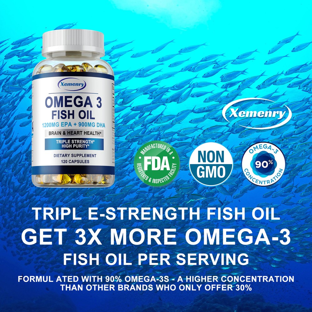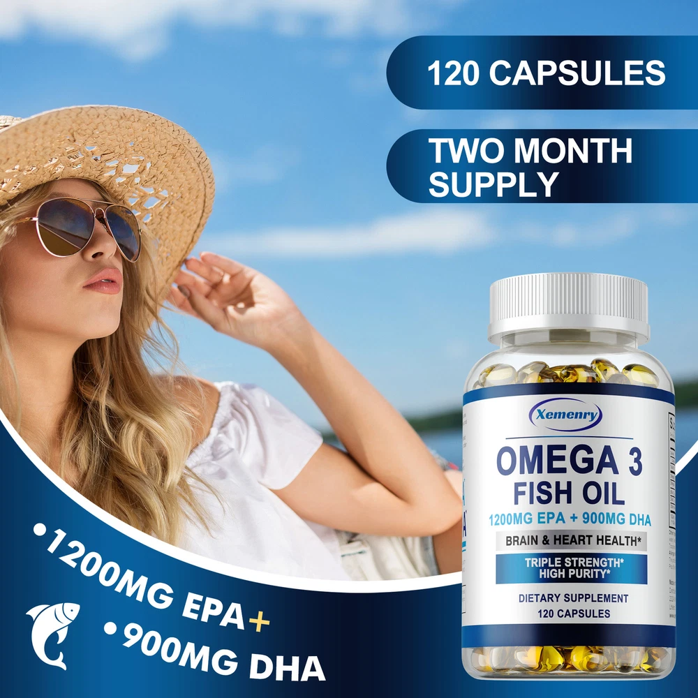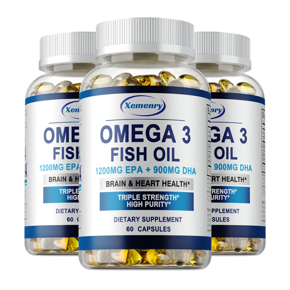 Expiration Date: 01/2027 Flavor: Unflavored Dosage: 6330mg Department: Men, Unisex, Women MPN: M-0045 Production Date: 01/2025 When to Take: After Meal Type: Vitamin Formulation: Capsule Item Weight: 40/65/100g Country/Region of Manufacture: Unknown Ingredients: Omega 3 Fish Oil, EPA, DHA FDA Registration Number: 10506864922 Storage: Keep in a cool, dry place and please sealing Features: All Natural, Easy to Swallow, Eco-Friendly Active Ingredients: Omega 3 Fish Oil, EPA, DHA Shelf Life: 2 years Number of Pills: 30/60/120 Capsules Main Purpose: Immune Support, Brain, Heart, Joint, Skin & Eye Health Brand: xemenry