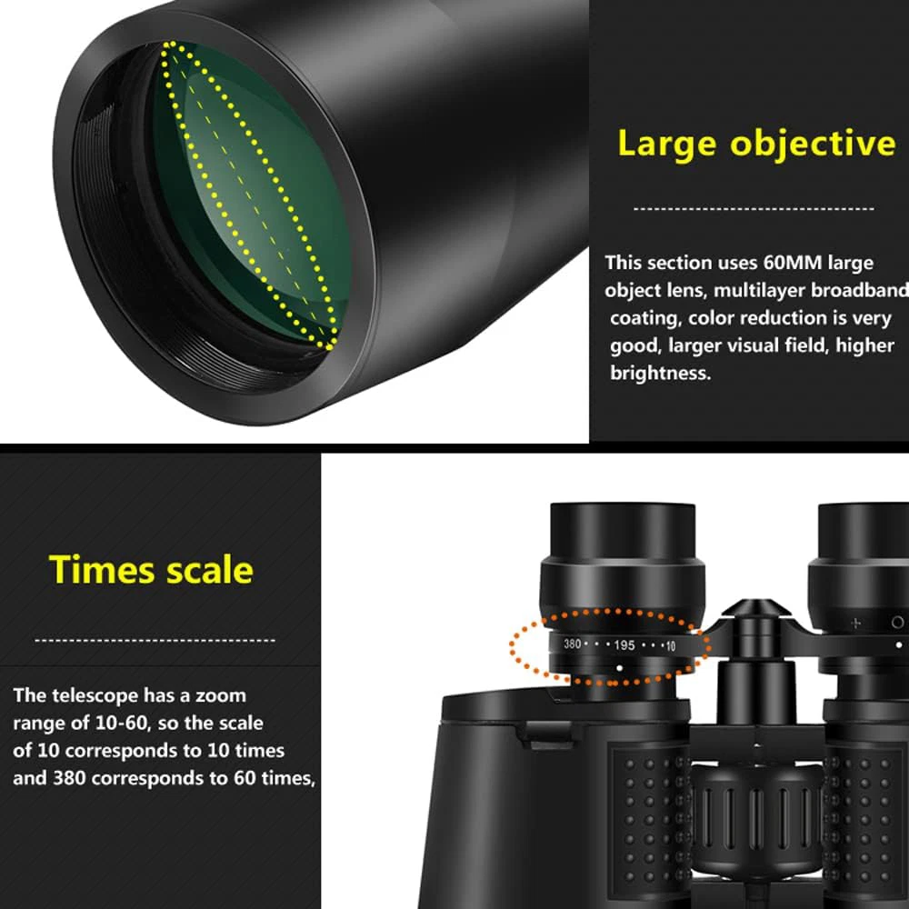 Fast Shipping Great Customer Support Satisfaction Guaranteed DESCRIPTION Shipping Shipping Shipping All domestic packages are shipped for Free (Unless other shipping method was selected during the checkout) Most items ship and arrive much sooner than the estimate delivery date. Usually within 2-3 days from payment. However, we have longer estimates to compensate for the occasional delay or supply chain breakdown. We do not accept P.O. BOXES - PLEASE PROVIDE A PHYSICAL ADDRESS Return Return Return In the event that you would like to return your purchase, we allow returns that are processed within the defined return date (the return date is to be found in the return policy/shipping and handling section) Please contact us for a return authorization and the return shipping address. Payment Payment Payment PayPal is our preferred method of payments it's the quickest, easiest and most secure way to pay for your goods or services online. PayPal offers buyer and seller protection should there be a problem. If you do not have a PayPal account, to get started and buy your first item with us is very easy. Simply click on the 'Buy It Now' button and follow the eBay checkout steps. Select PayPal as the payment method you then will be given the chance to enter your card details in to PayPal's secure checkout in order to pay for your order. Once the payment has been made, you will then be given the opportunity to make your own PayPal account to make paying for your items in the future very easy. Should there be a problem with payment please do let us know. Feedback Feedback Feedback Customer satisfaction is very important to us. If you have any problem with your order,please contact us and we will do our best to make you satisfied, please do not leave a negative feedback before we resolve your problem. We guarantee that your issue will be solved quickly. As long as you are happy with your purchase of , please leave us a positive feedback. Your feedback is very important to us it affects our search placement on eBay. We will leave a positive feedback for you in return automatically once we receive your feedback. Contact Us Contact Us Contact Us If you have any queries, please contact us via ebay. We usually respond within 24 hours on weekdays. Thank you for visiting our ebay store! Continuous zoom between 10X-30X, higher magnification can be seen farther When looking at the maximum multiple you can see the Moon Crater 60MM objective lens,BAK4 Prism, FMC Optical coating prism, Multi-coated optics increase light transmission resulting in brighter and sharper images with high contrast levels This pair of binoculars can be used with a tripod, it is very convenient when you watch something for a long time. and this can be adjusted with a central focus on the different distance Natural rubber is environmentally friendly and healthy, with good anti-seismic performance and effective waterproofing,Natural rubber is environmentally friendly, has good seismic performance and is life waterproof. The middle frame is made of alloy material, which is sturdy and durable Powerful long-distance telescope,Ideal for touring and sightseeing, Moon watching,vocal concert, sport match, watch the birds and beasts perform, camping, exploration, shooting, fishing and admire the scenery High Power 10-380X Zoom Binoculars for Bird Watching and Stargazing Click here to see description Fast Shipping Great Customer Support Satisfaction Guaranteed DESCRIPTION Shipping All domestic packages are shipped for Free (Unless other shipping method was selected during the checkout) We ship within two business days of payment, usually sooner Standard FREE shipping takes between 3-5 business days Expedited shipping takes between 2-3 business days Overnight shipping takes between 1-2 business days We do not accept P.O. BOXES - PLEASE PROVIDE A PHYSICAL ADDRESS We Ship Globally using ebay's GSP, the item is sent to a logistic center in KY and shipped from there to the rest of the world. International customers are responsible for all duties and taxes Contact your local authority for questions related to the amount of duties or taxes you will be responsible for Return In the event that you would like to return your purchase, we allow returns that are processed within the defined return date (the return date is to be found in the return policy/shipping and handling section) Please contact us for a return authorization and the return shipping address. Please contact us for a Return Merchandise Authorization (RMA) number. We advise you to use a reputable carrier service when returning your goods. Please pack all returns appropriately. We ship globally Via eBay's global shipping program (GSP). Thus we don't cover returns for items shipped globally. Buyers returning such items will be refunded ONLY for the item's cost and not for the shipping. please check the Voltage information and make sure it matches the one in your country. In case it's not stated in the description, do ask us. Payment PayPal is our preferred method of payments it's the quickest, easiest and most secure way to pay for your goods or services online. PayPal offers buyer and seller protection should there be a problem. If you do not have a PayPal account, to get started and buy your first item with us is very easy. Simply click on the 'Buy It Now' button and follow the eBay checkout steps. Select PayPal as the payment method you then will be given the chance to enter your card details in to PayPal's secure checkout in order to pay for your order. Once the payment has been made, you will then be given the opportunity to make your own PayPal account to make paying for your items in the future very easy. Should there be a problem with payment please do let us know. Feedback Customer satisfaction is very important to us. If you have any problem with your order,please contact us and we will do our best to make you satisfied, please do not leave a negative feedback before we resolve your pro