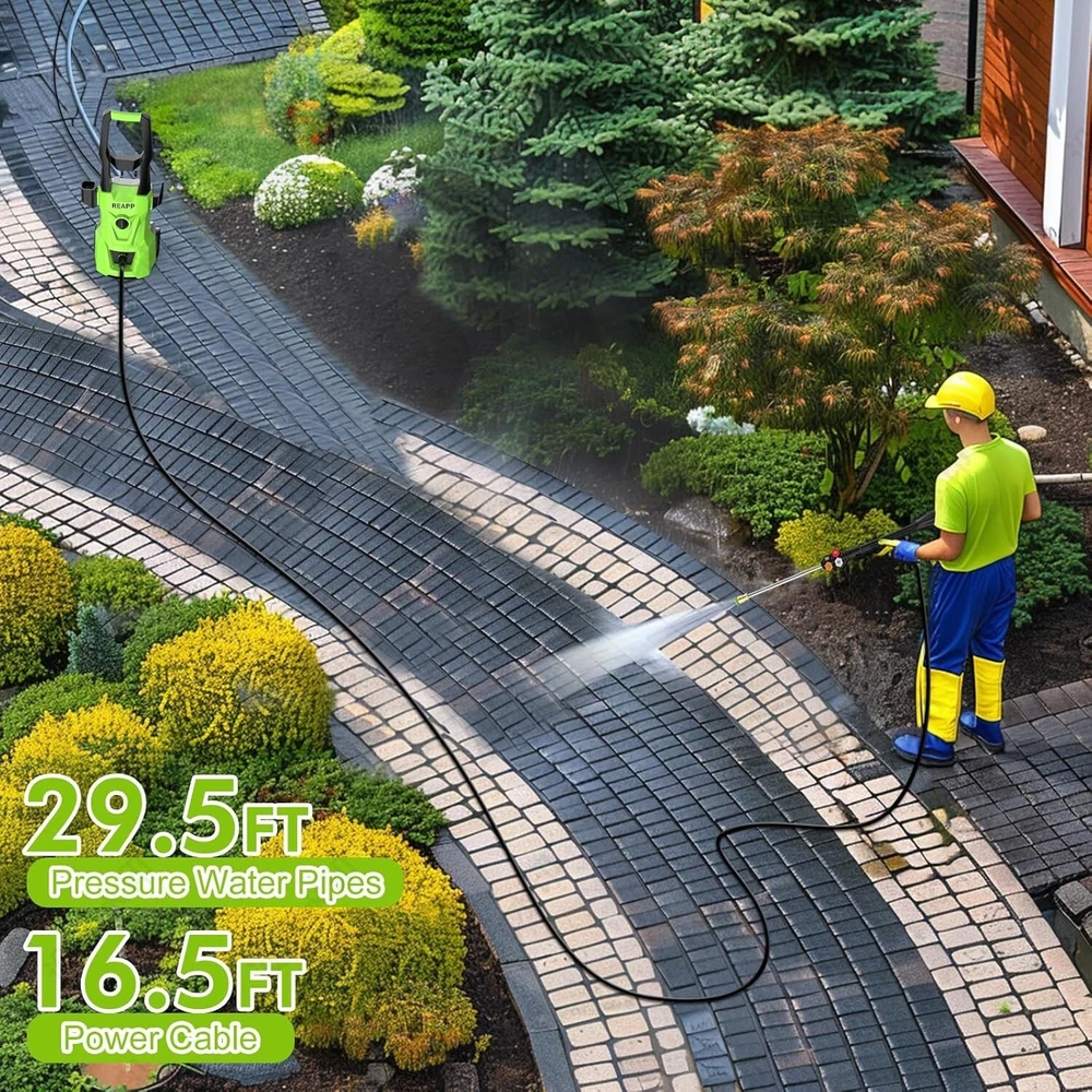 This electric pressure washer is a game-changer for deep cleaning! The 3000 PSI power blasts away stubborn dirt on driveways, cars, and patios without breaking a sweat. I love the 4 interchangeable nozzles—they make switching between tough grime and delicate surfaces a breeze. The 3.2 GPM flow keeps water waste low while still tackling big jobs fast. Super durable, easy to use, and much quieter than gas models. Perfect for cars, decks, and outdoor furniture—cleaning has never been this effortless! Highly recommend.