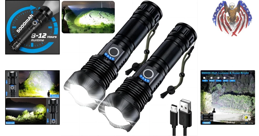 High Power 990,000 Lumens Rechargeable LED Flashlights for Camping and Home