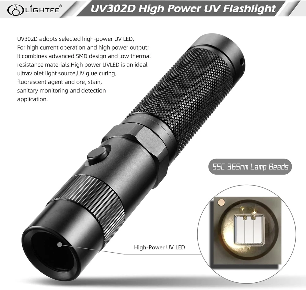 High Power Aluminum UV Black Light Flashlight - Perfect for Pet Stains & Curing ‹ › ‹ › ‹ › ‹ › ‹ › ‹ › ‹ › ‹ › ‹ › High Power Aluminum UV Black Light Flashlight Perfect for Pet Stains & Curing Key Features: Utilizes LG 365nm SMD LED source for superior performance. Impressive output power of up to 3000mW with 200mW/cm radiant energy. Equipped with a hard toughened black filter optical lens that eliminates extraneous visible light for intensified fluorescence results. Advanced plating technology aluminum alloy deep reflector cup provides a tight, strong, and far-reaching light beam. Powered by 1 high capacity rechargeable Samsung battery (2600mAh); includes an excellent quality charging base with overheat and overcharge protection. Extended 6-8 hours runtime for continuous use. 4.9 feet impact resistant, anti-scrape, and anti-corrosive for durability in harsh environments. IPX-8 waterproof rated, submersible up to 6.5 feet for 30 minutes to tackle outdoor challenges. Polarity reverse protection to prevent improper battery insertion. 18 months quality warranty and 30 days return policy for peace of mind. Multitask Applications: Detecting counterfeit documents and money. Forensic science and gasoline inspection. Amber and jewelry detection. Body fluid detection and fluorescence. Attracting certain breeds of fish or hunting scorpions. What’s Included: 1* UV302D UV flashlight 1* 2600mAh battery 1* Excellent quality battery DC charger 2* spare O-rings 1* Lanyard 1* User Manual Why Choose Our UV Flashlight? Elevate your ability to detect, inspect, and explore with our High Power Aluminum UV Black Light Flashlight. Designed for professionals and enthusiasts alike, it delivers true and pure UV 365nm light, making it ideal for everything from pet stain detection to forensic applications. With a remarkable build quality and reliability under extreme conditions, this flashlight is not just a tool, but a trusted companion on your adventures. Seize the opportunity to enhance your detection capabilities and experience unparalleled performance—order your UV302D today! Shipping Free & Fast Shipping - We offer free shipping to most of the USA with a normal delivery time of 3-7 days. However, due to the current situation, additional delivery time (up to 3 weeks) may be required for some items. Alternative Carriers - We may use alternative carriers (e.g. USPS, FedEx, UPS, etc.) to ensure your package arrives safely and on time. Due to the use of multiple carriers, we are unable to provide a tracking number automatically. Handling Time - Orders are processed and shipped within 1-2 business days of receiving cleared payment. Shipping Restrictions - Shipping to Alaska, Hawaii, Puerto Rico, Guam, and other US territories may incur shipping charges or delivery restrictions. Please contact us before ordering, or your order can be refunded/cancelled. State Restrictions - There may be restrictions based on your state of purchase. For example, certain items may not be shipped to California due to state regulations. Contact for Tracking Updates - If you require tracking updates or have any concerns about the delivery of your order, please feel free to contact us, and we will be happy to assist you. Return 30-Day Hassle-Free Returns - We want you to be completely satisfied with your purchase. If you are not, you can return the item within 30 days of receiving it for a full refund or exchange. Easy Return Process - To start a return, simply contact us and we will provide you with a prepaid return shipping label and detailed instructions. Restocking Fee - There are no restocking fees for returns. However, the buyer is responsible for return shipping costs if the return is not due to a seller's error. Refund Processing Time - Refunds will be processed within 5 business days of receiving the returned item in its original condition. Payment We accept all major credit cards, PayPal, and Apple Pay for your convenience. Your payment information is secure and encrypted to ensure a safe and seamless transaction. Please complete your payment within 3 days of purchase to avoid any delays in shipping. Feedback Your feedback is extremely important to us. We strive to provide the best products and customer service possible. If you are satisfied with your purchase, please take a moment to leave us a positive review. If you have any concerns or issues with your order, please contact us before leaving negative feedback. We are committed to resolving any problems and ensuring your satisfaction. Contact Us If you have any questions or concerns, please feel free to reach out to our customer support team. You can contact us through the eBay messaging system. We are available Monday to Friday, 9:00 am to 5:00 pm EST, and we will do our best to respond to your inquiry within 24 hours. Buy it now and enjoy a pleasant shopping experience! UPC: Not Set Voltage: 3.7 volts Item Height: UV Flashlight Item Length: UV Flashlight Item Weight: 0.18 kilograms Item Width: Not Set Model: Not Set Lumens: 3000 lumen Number of LEDs: 1 Unit Quantity: 1 Material: Aluminum Features: Batteries Included,Handheld,Rechargeable,Waterproof Brand: Unbranded Type: Flashlight Lighting Technology: UV-Light Power Source: Battery Operating Range: 6.5 ft MPN: Not Set Number of Batteries: 1 Aa Batteries Required. (included) Battery Technology: AA Color: Black Country/Region of Manufacture: Not Set Operating Time: 6-8 Hours IP Rating: IPX-8 Number of Lights: 1-3 Unit Type: Unit Personalize: Not Set