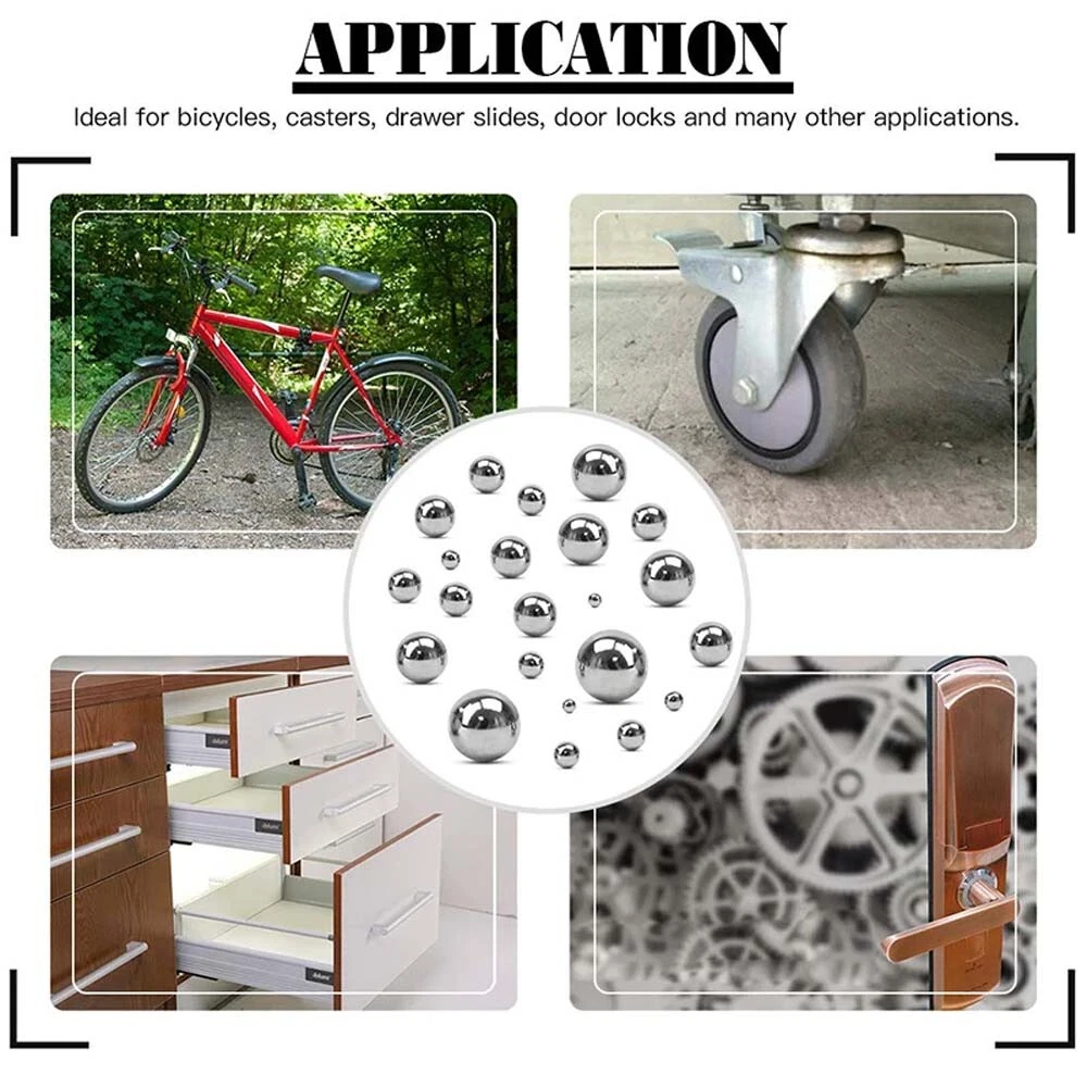 High Precision Chrome GCR15 Steel Solid Steel Ball Bearings - Dia 1mm to 200mm STORE CATEGORIES Caps & Stoppers Magnet Spring Tools Transmission Screw High Precision Chrome GCR15 Steel Solid Steel Ball Bearings - Dia 1mm to 200mm DESCRIPTION OF THE PRODUCT Material: Bearing steel GCR15 (100Cr6) Hardness: >60HRC Size: Φ1mm~Φ200mm EASY TO USE These ball bearings used to installed between the inner and outer rings, which can be used to reduce the friction when the bearings rotate, thus reducing the speed of the ball bearings and extending the life of the machine. WIDE RANGE OF APPLICATIONS The Bearing steel balls set is an ideal tool for bicycles to replace front and rear wheel bearings and bottom brackets, keeping the pedaling process smooth and efficient. Widely used in bicycles, motorcycles, auto parts, bearings, casters, drawer slides, door locks, home furniture, aerospace, instrumentation, and many other applications. EXCEPTIONAL CUSTOMER SERVICE We are committed to providing high quality products and excellent customer service. If you are not satisfied with your purchase, please contact us and we will ensure that any issues are resolved promptly. (We have all sizes and lengths as we cannot list so many sizes in one listing. If you need a different size, please send us a message and we will let you know if we have it in stock) About us Payment Contact us Guarantee About item About us ● Hello Dear Customer: we have been engaged in online sales of hardware fasteners for more than 10 years, if you need a large number of or customized hardware products, please contact us, we can provide good prices and better service. ● All products in our store are elaborately made. Please feel free to buy. ● If you are satisfied with the products, I expect you can leave us positive feedback. ● If you have any problems or be not satisfied with them, please feel free to contact us, we will reply to you within 24 hours. Payment ● We accept multiple payment methods supported by the platform. ● We only accept your Ebay Address, Please Make sure it's 100% right. ● The items you ordered will be shipped out in 2 business days by Air Mail when your payment is clear. Contact us ● We care about our valued buyers, if you have any questions, our Customer Service staff will be very glad to help you. We try our best to reply to your emails as soon as possible, however, due to the high volume of daily incoming emails and time zone difference, we may not be able to reply to your emails immediately. Please allow 12 business hours for us to respond. Guarantee ● Good quality. Buy with confidence! ● If you are not satisfied when you receive your item, please return it within 7 days for a replacement or money back. Please contact me before you return it. ● Full refund after we receive our original item, Note: Return shipping is to be paid by the Buyer. ● We maintain high standards of excellence and strive for 100% customer satisfaction! Feedback is very important to us. We request that you contact us immediately before you give us neutral or negative feedback, so that we can satisfactorily address your concerns. About item ● For the functional products in our shop, we make sure that the functions are the same as the description. ● About the product colour:Because of the different light and environment when the product is photographed, In a few instances the colour of the product may have a little colour difference with the actual colour of the product, I hope you can understand.