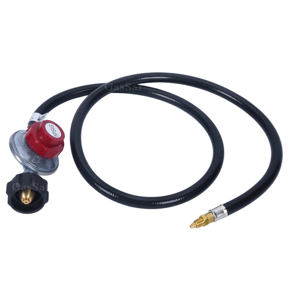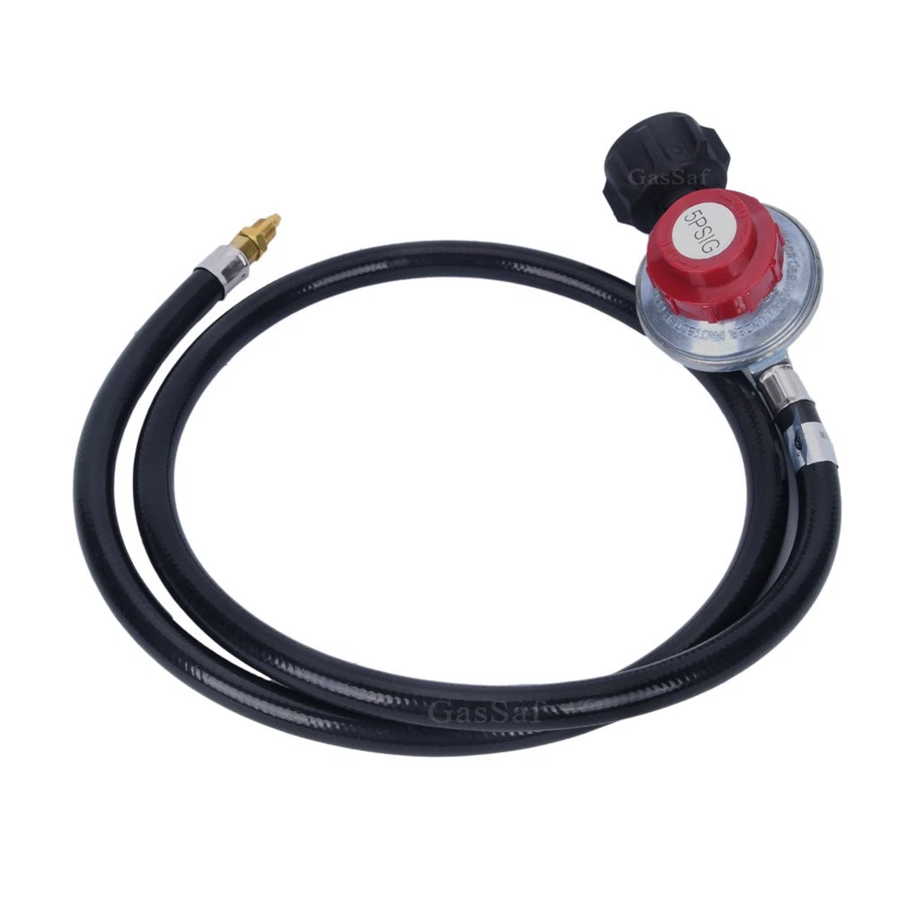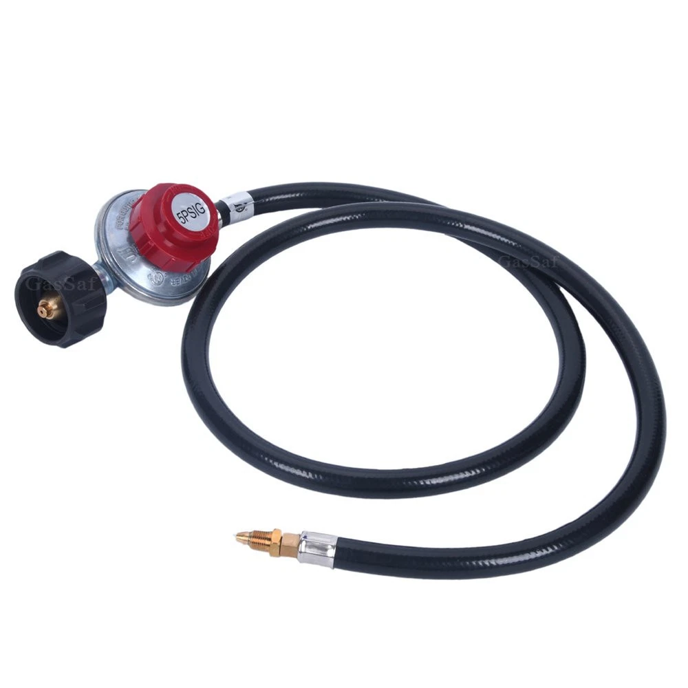 Adapts for 1/8-inches male orifice connector and QCC-1/Type-1 propane tank Adjustable 0-5PSI output regulator with 4-feet/48incn hose is used to variety of high pressure applications High-quality hundred percent solid brass to provide secure and sealed connection between applications and tank CSA Certified propane regulator and hose has excess flow protection and will automatically shut off. Protect you from danger Apply to turkey fryer, outdoor cooker, burner and more .(1/8-inches male orifice connector)