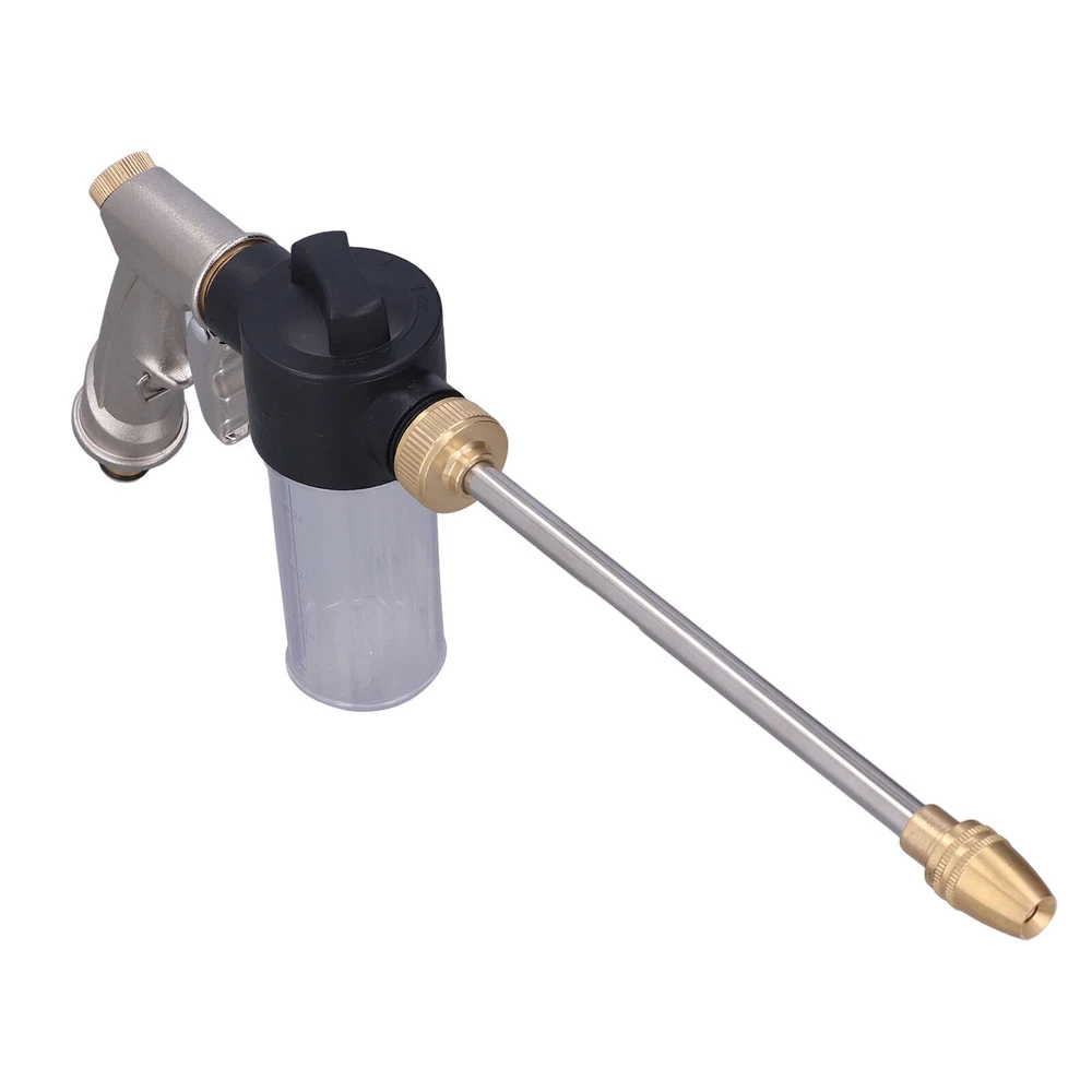 Feature: 1. ROTATABLE HOSE NOZZLE: Flexible and adjustable water flow from fine mist, moderate spray or jet stream by rotating the hose nozzle from left to right. Home garden hose pipe wand attachment with adjustable nozzles can meet every garden enthusiast's watering needs. 2. STURDY ENOUGH ZINC ALLOY BODY: The hose nozzle is developed and enhanced on the basis of the traditional plastic sprinkler nozzle. The adjustable sprayer head is made of brass and can be twisted for thousands of times. The zinc alloy body is sturdy enough to be used for a long time. 3. WITH HOSE COUPLER: The stainless steel washer rod is equipped with a brass standard garden hose coupler instead of the aluminum body, strong and durable, not easy to bend 4. EASIER CLEANING APPLICATIONS: Non corrosion high pressure sprayer and multiple spray patterns is suitable for garden watering and cleaning applications. Strong water pressure makes cleaning easier. Multiple spray modes make it a handy and practical tool. 5. WIDELY USED: High pressure water gun is suitable for garden watering, car washing, floor cleaning, pet washing, providing great convenience. Specification: Item Type: High Pressure Water Gun Material: Brass + zinc alloy + stainless steel Spraying Distance: Approx. 10 ~ 20meter / 32.8 ~ 65.6ft Foam Container Capacity: 100ml Applicable Hose: 1/2in Scope of Application: Garden watering, car washing, floor cleaning, pet washing Package List: 1 x Water Gun 1 x Container 1 x Spray Lance All the items will be dispatched within one business day by Airmail after the payment is clear. Most times you will receive your order within 10-30 business days after we transfer your package to the delivery company. We cannot guarantee the delivery timeframe if the post office has any unexpected delays due to holiday, weather, customs, or other conditions. Some countries like Russia, Brazil, or some European countries may take up to 50 days or longer for delivery. We appreciate your patience if you haven't received items in 30 days(Russian customers may need more patience by reason of the local delivery system and/or customs). If you are concerned in any way, please feel free to contact us via ebay message instead of leaving negative/neutral feedback or opening a dispute . We will do our best to solve any problem(resend or refund any missing item). Customs duty is obligation and liability of citizen s in your country, so buyer should be responsible for any tax and custom duty incurred. Generally, the delay or failure delivery is sometimes caused by the policy of different customs. 1. Our listing price includes the value of goods,packaging cost,and export taxes,not including international duties. 2. duties,taxes,and charges are not included in the item price or shipping fee. 3. T he duties are buyers' responsibility .Please check with your country's customs office determine what these additional costs will be prior to your purchase. 4. All disputes arising from the duties will be submitted to ebay for solution. 1. Any questions, pls. contact us via ebay message or email us. We will reply your message within 48 hours. If you do not receive our reply within 48 hours, pls. post a message again because sometimes our message system may block some emails. 2. If you are satisfied with our service, pls. kindly leave us a positive feedback and give us the Detailed Seller Rating with all " 5 " in very area 3. Our aim is to provide Level Customer Service, your recognition will encourage us greatly and serve you better. We strive to keep all our customers satisfy. We will do our up most to exceed your expectations in customer service, communication and dispatching of your orders.