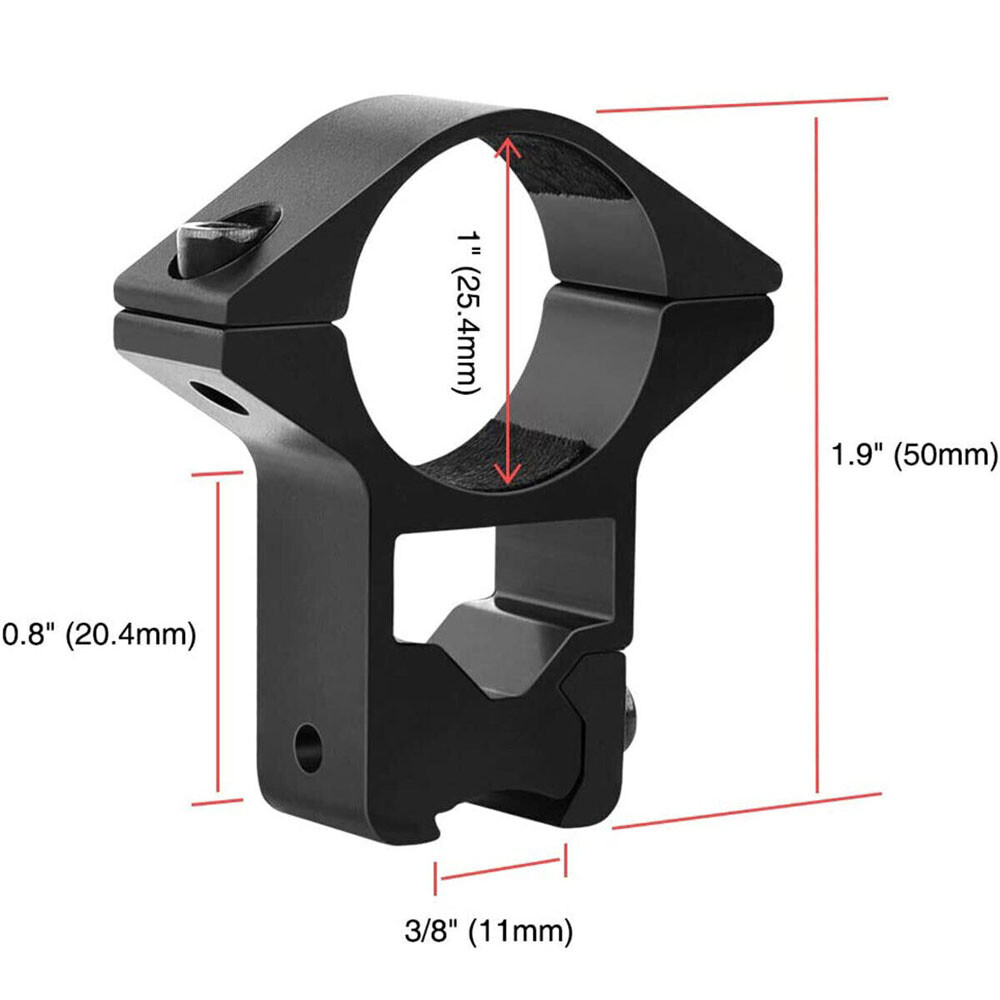 High Profile 1" Scope Ring for 11mm Dovetail Rail Laser Light Mount in Black