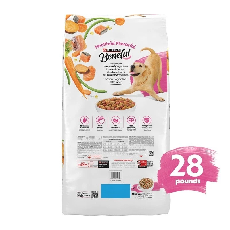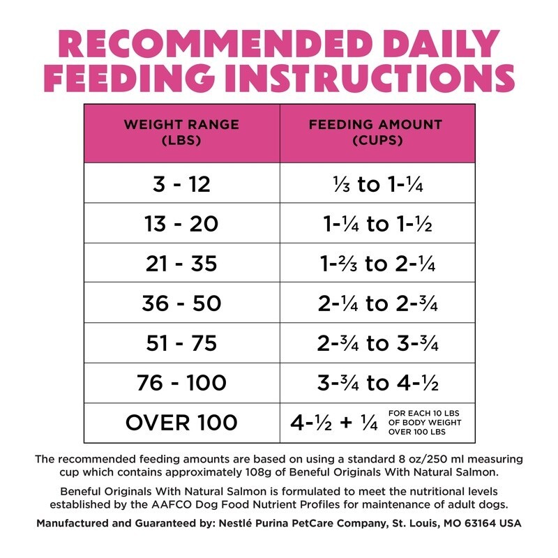You may also like Large Breed Dog Food Real Beef Pea Carrot Brown Rice Nutrient Rich Kibble 14lb 28.84 USD 30.36 USD Free shipping 5% off Grain Free Lamb Meal Peas Dry Dog Food All Life Stages Healthy Gut Nutrition New 116.98 USD Free shipping Adult Dry Dog Food Chicken Brown Rice Recipe Non-GMO Kibble 13lbs Vitality New 51.27 USD Free shipping Wet Dog Food Variety Pack Chicken Salmon Turkey Recipes Savory Broth 12 Cups New 24.39 USD Free shipping Healthy Weight Dog Food Turkey Potato Recipe Digestion Skin Care Kibble 4lb New 28.9 USD 30.42 USD Free shipping 5% off Beef Chicken Wet Dog Food Pro Performance 12.5oz Cans 6 Pack Healthy Nutrition 19.67 USD Free shipping High Protein Lamb Flavor Dry Dog Food Complete Nutrition Adult Dogs 18.5lb New 26.37 USD Free shipping Adult Dry Dog Food Chicken Vegetable Bacon Flavor 44lbs Kibble Healthy Nutrition 28.9 USD 30.42 USD Free shipping 5% off Grain Free Variety Pack Wet Dog Food Chicken Beef Gravy Peas Carrots 12 Cups New 17.08 USD Free shipping Grain Free Salmon Sweet Potato Pumpkin Dry Dog Food 12lb Nutrition Kibble New 43.47 USD Free shipping Complete Nutrition Dry Dog Food Chicken Rice Flavor Adult All Breeds 46lb Kibble 35.86 USD Free shipping High Protein Complete Dry Dog Food Kibble Nutrient Rich Lamb Flavor 18.5lb New 26.37 USD Free shipping Choose the right high protein dog kibble and give your dog the nutrition they need to grow by filling their bowl with Purina Originals With Natural Salmon Dry Dog Food Recipe With Added Vitamins, Minerals and Nutrients. This natural Purina dog food recipe has everything your dog needs: a generous 24 grams of protein in each cup to help them develop strong muscles, 23 essential vitamins and minerals to support overall wellness. He’ll also get omega 6-rich in each serving of this salmon dog food to support healthy skin and shiny coat. Featuring delicious real salmon as the number 1 ingredient with accents of sweet potatoes, green beans and carrots, this delicious kibble will make every mealtime special for your dog. You’ll appreciate that he’ll get 100 percent complete and balanced nutrition for adult dogs with no artificial preservatives or flavors and added colors only from natural sources, while he’ll love the mouthwatering salmon taste in every serving. Fuel your dog’s daily adventures with Purina Originals With Natural Salmon Dry Dog Food Recipe With Added Vitamins, Minerals and Nutrients. chooses to put joy into everything we do so that you can choose joy for your dog at every meal. We believe that the best dog food recipes combine real ingredients with mouthwatering flavor in every nutritious recipe. And with each Purina dog food recipe, we give your dog a mealtime you can both get excited about. Healthful. Flavorful. . Purina Originals Dry Dog Food for Adult Dogs, High Protein Natural Salmon, 28 lb Bag Purina dog food featuring natural salmon as the number 1 ingredient along with accents of real sweet potatoes, green beans and carrots No artificial preservatives, flavors, or colors in this dog kibble recipe with natural salmon Real salmon dog food with 24g of protein per cup for strong muscles plus omega-6 fatty acids to help maintain a shiny coat and healthy skin Naturally delicious high-quality natural Purina dry dog food with added vitamins, minerals and nutrients containing antioxidants, including vitamin E, to help support immune system health Purina dry dog food with Natural Salmon dog food provides 100 percent complete and balanced nutrition for adult dogs, including 23 essential vitamins and minerals to help support overall health You may also like Dimmable Touch Control Table Lamps Set USB Outlet Living Room Nightstand 62.49 USD Free shipping Waterproof Dining Bench Cover Elastic Stretch Protector Furniture Slipcover New 22.5 USD 23.68 USD Free shipping 5% off Versatile 5 Pocket File Organizer Documents Home Office School Hanging Storage 11.29 USD 11.88 USD Free shipping 5% off Soft Absorbent Bath Towel Quick Dry Everyday Use Home Spa Hotel Travel 31.08 USD Free shipping Reversible Quilt Set 3PCS Soft Microfiber Bedspread W/ Pillow Shams All Seasons 47.49 USD Free shipping Ulnar Deviation Finger Splint Brace Adjustable Support Arthritis Injury Recovery 47.51 USD Free shipping Measuring Tool Pipe Cable Tire Diameter Circumference Durable Metal Case New 21.5 USD 22.63 USD Free shipping 5% off Hypoallergenic Cotton Body Pillow Case W/ Zipper Easy Care Machine Washable New 10.29 USD 10.83 USD Free shipping 5% off Stainless Steel Spoons Durable Reusable Kitchen Utensils Modern Design New 15.96 USD 16.8 USD Free shipping 5% off Multi-Purpose Cat Scratching Post Bed Hideaway Cozy Cardboard Enrichment Zone US 41.97 USD 44.18 USD Free shipping 5% off Porcelain Halloween Accent Plates Set of 4 Dishwasher Microwave Safe 8 Inch New 24.64 USD 25.94 USD Free shipping 5% off Folding Over Door Hanger Rack Space Saving Non-Slip Towel Hook Durable Metal New 27.44 USD 28.88 USD Free shipping 5% off