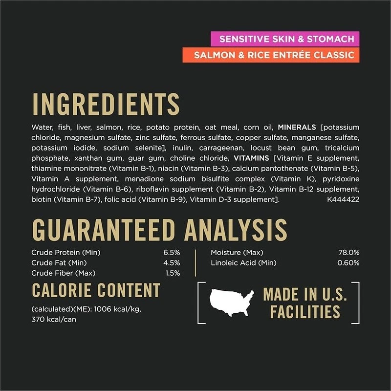 You may also like Premium Dry Puppy Food Chicken Recipe Small Medium Breeds 30lb Nutrition New 104.39 USD Free shipping High Protein Natural Wet Dog Food Variety Pack Chicken Beef Grain Free 13oz Cans 19.92 USD Free shipping Small Breed Dry Dog Food Lamb Brown Rice High Energy Immune Support Kibble 5lbs 29.62 USD Free shipping Beef Chicken Wet Dog Food 6 Pack 12.5oz Cans Performance Healthy Grains New US 20.03 USD Free shipping Grain Free Salmon Pea Recipe Dry Dog Food All Breeds 11lbs Nutritious Kibble New 29.79 USD Free shipping About this item Premium dog food made with real salmon for a taste dogs love, and easily digestible rice, which is gentle on the stomach and digestive system Natural prebiotic fiber in this Sensitive Stomach wet dog food nourishes specific intestinal bacteria for digestive health Sensitive skin canned dog food includes linoleic acid, an omega fatty acid, for healthy skin and coat and contains no wheat or soy and artificial colors, flavors or preservatives High protein dog food to help him maintain lean muscles, while the highly digestible formula supports optimal nutrient delivery Wet food for dogs providing 23 essential vitamins and minerals and 100 percent complete and balanced nutrition for adult dogs Brand: Flavor: Salmon & Rice Age Range (Description): Adult Item Form: Loaf Specific Uses For Product: Allergy; Digestive Health; Maintenance; Sensitive Stomach; Skin & Coat; Appetite Support; Energy & Vitality Support; Eye Health; Hypoallergenic; Immune Support; Stress & Anxiety; Antioxidants, Allergy; Digestive Health; Maintenance; Sensitive Stomach; Skin & Coat; Appetite Support; Energy & Vitality Support; Eye Health; Hypoallergenic; Immune Support; Stress & Anxiety; High-Protein, Allergy; Digestive Health; Maintenance; Sensitive Stomach; Skin & Coat; Appetite Support; Energy & Vitality Support; Eye Health; Hypoallergenic; Immune Support; Stress & Anxiety; No Artificial Colors, Allergy; Digestive Health; Maintenance; Sensitive Stomach; Skin & Coat; Appetite Support; Energy & Vitality Support; Eye Health; Hypoallergenic; Immune Support; Stress & Anxiety; No Artificial Flavors, Allergy; Digestive Health; Maintenance; Sensitive Stomach; Skin & Coat; Appetite Support; Energy & Vitality Support; Eye Health; Hypoallergenic; Immune Support; Stress & Anxiety; Real Meat, Allergy; Digestive Health; Maintenance; Sensitive Stomach; Skin & Coat; Appetite Support; Energy & Vitality Support; Eye Health; Hypoallergenic; Immune Support; Stress & Anxiety; Soy Free, Allergy; Digestive Health; Maintenance; Sensitive Stomach; Skin & Coat; Appetite Support; Energy & Vitality Support; Eye Health; Hypoallergenic; Immune Support; Stress & Anxiety; Wheat Free, Allergy; Digestive Health; Maintenance; Sensitive Stomach; Skin & Coat; Appetite Support; Energy & Vitality Support; Eye Health; Hypoallergenic; Immune Support; Stress & Anxiety; With Vitamins See more You may also like Neon LED Kids Table Lamp Gaming Controller Design Night Light W/ 4 Hour Timer US 24.36 USD Free shipping Kids Leak Proof Lunch Box Shark Bento Snap Go Microwave Dishwasher Safe Plastic 33.87 USD Free shipping Low VOC Interior Paint Washable Good Hide Coverage Certified Eggshell 1gal New 33.55 USD Free shipping Cotton Polyester Portable Hand Woven Hammock W/ Drawstring Bag & Hardware New US 29.89 USD Free shipping Coccyx Orthopedic Memory Foam Seat Cushion Back Pain Relief Office Car Dark Blue 44.78 USD Free shipping Wood Marble Bookends Set of 2 Handcrafted Natural Eco-Friendly Home Office Decor 16.93 USD Free shipping Textured Stone Spray Paint Wood Metal Glass Ceramics Quick Dry Low Odor 12oz New 17.9 USD Free shipping Universal Fit Faux-Fur Seat Cover 2 Piece Durable Protection Airbag Compatible 51.95 USD Free shipping 350PCS Gold Plastic Dinnerware Set Disposable Tableware 50 Guests Party Events 62.39 USD Free shipping Expandable Canvas Duffel Bag Travel Overnight Weekender Bag Multi-pocket Durable 68.89 USD Free shipping LED Bar Table W/ Bluetooth Lights Pub Gaming Table Metal Frame Rustic Design New 64.99 USD Free shipping Microfiber Bed Sheet Set Soft Hypoallergenic Stain Resistant 3PC 16in Pocket New 63.98 USD Free shipping