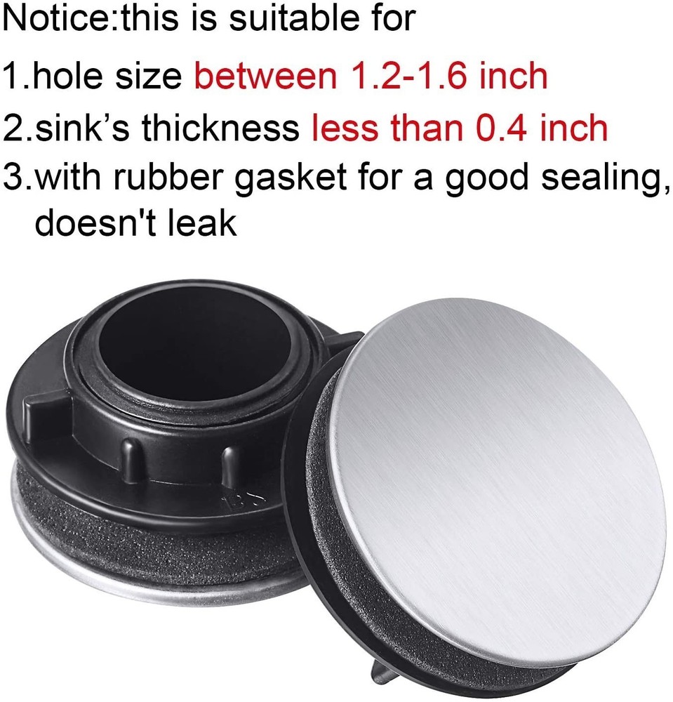 High Quality Stainless Steel Kitchen Sink Tap Hole Cover Prevents Water Leakage DESCRIPTION Features: * and high quality *Made of high quality material, and practical to use *The hole cover keep the kitchen clean and tidy by water from leaking onto the floor. *It is a useful kitchen accessory. *Easy to unstop for disposal waste water as well. *Perfect for wash basin, bathroom s or bathtub, help keep more water. Specifications: Material: Stainless Steel Color: Silver Size(Dia):Approx.36mm Suitable for hole: 26~32mm Package Contents: 2*Stainless Steel Kitchen Sink Tap Hole Blanking Stopper Basin Cover Note: 1. The real color of the item may be slightly different from the pictures shown on website caused by many factors such as brightness of your monitor and light brightness. 2. Please allow slight manual measurement deviation for the data. POLICES Shipping Payment WARRANTY We only ship to confirmed ebay Order addresses. Please comfirm that your Order address is in line with your shipping address. Please kindly note that the c ombined shipping is not provided because the shipping fee is calculated by weight. Also, the each additional item means exactly the the same color and size. It takes about 7 -15 working days to US; about 10-30 working days to other countries. Transit time may be a little delayed because of the bad weather and customs inspection . If you do not receive your item within 30 working days since payment finished, please contact us immediately for further assistance. Payment must be completed within 5 days. If you have any problems about payment, please contact us via ebay message. We strive for 100% customer satisfaction! Positive Feedback is very important to us. If you have any questions, p lease feel free to contact us via "Ask seller a question" . We will reply your email within 24 working hours.
