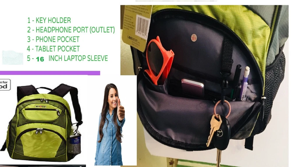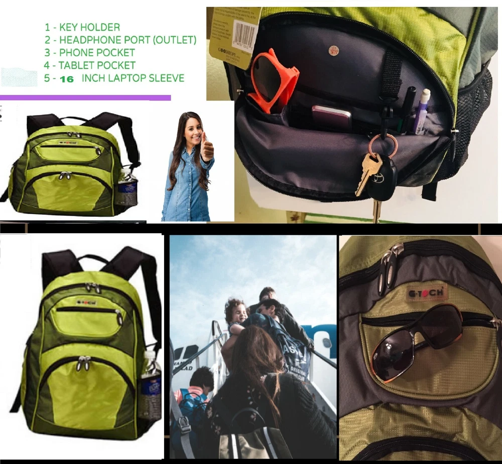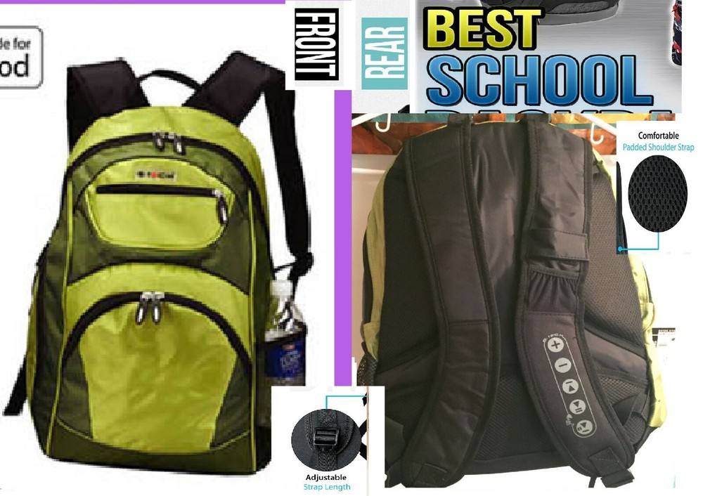 High School Travel Rucksack with Zipper - Green Backpack Clearance Sale for Students and Travelers
