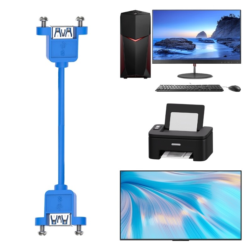 Features: USB female to USB female data cable, extension cord with fixing Ear and screws for easy fixation. Supports charging and data transmission, with data transmission at 5Gbps. 28AWG, aluminum foil shielding mesh, PVC outer cover, multi-layer protections, interferences resistance, stable transmission. There are four different lengths to choose from, ranging from 30cm to 150cm, to meet different needs. Powerful compatibility, plug and play, suitable for desktop computers, printers, televisions, mice, keyboards, USB card readers, USB fans, USB lights, Specifications: Material: PVC Length: 30cm, 60cm, 1m, 1.5m(optional) Size: about 30cm/11.81", 60cm/23.62", 1m/3.28ft, 1.5m/4.92ft Package Includes: 1Pc USB3.0 Female to Female Data Cable note: Please allow 1-2cm errors due to manual measurement. Please allow for slight color differences due to different display resolution.