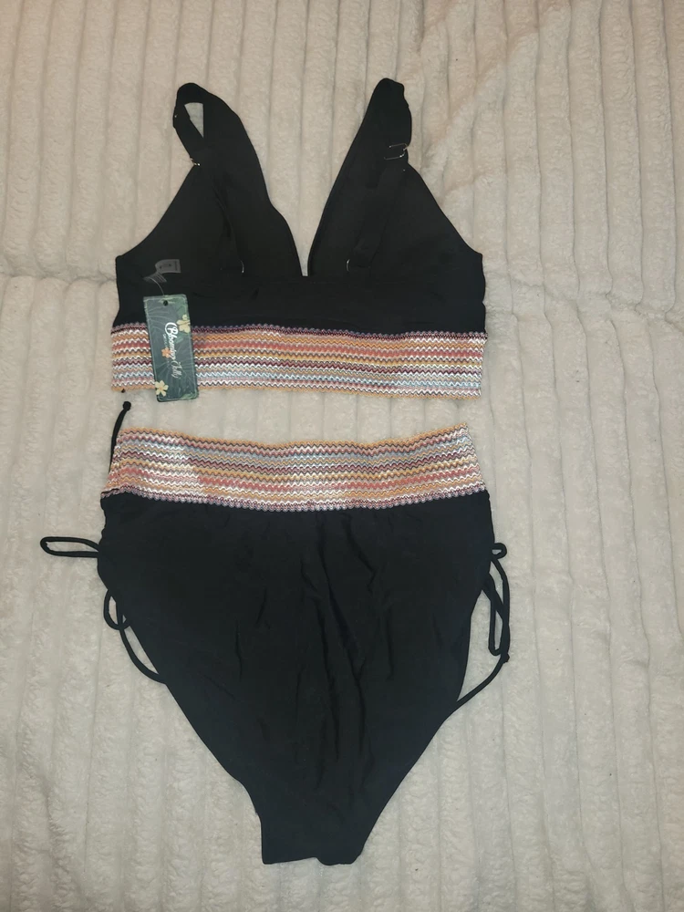 Blooming Jelly Women's High Waisted Bikini Set – Black, Size L Elevate your swimwear style with the Blooming Jelly Women's High Waisted Bikini Set, designed for both comfort and confidence. This chic two-piece swimsuit features a flattering high-waisted bottom that offers effective tummy control and a secure, figure-enhancing fit. The matching bikini top provides ample support and a sleek silhouette, making it perfect for poolside lounging or beachside adventures. Rendered in classic black, this set is a timeless addition to any swimwear collection. Size Large. Brand new.