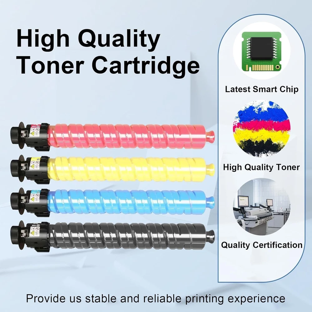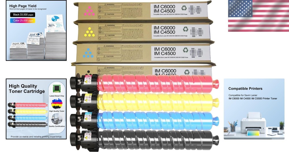 High Yield Toner Cartridge for Ricoh Savin Lanier Printer ‹ › ‹ › ‹ › ‹ › ‹ › ‹ › ‹ › ‹ › High Yield Toner Cartridge for Ricoh Savin Lanier Printers OEM Numbers: 842279, 842280, 842281, 842282 (Black, Magenta, Yellow, Cyan) Compatible Models: Ricoh Savin Lanier IM C4500, IM C6000, IM C5500 printers Product Features: High Page Yield: Experience exceptional prints with up to 33,500 pages for the black cartridge and 25,000 pages for each color cartridge, based on 5% coverage of A4/Letter. Quality Toner: Each cartridge undergoes a rigorous quality inspection process to meet or exceed the print quality of cartridges. Reliable Performance: Ideal for daily printing needs in offices, schools, homes, and shopping malls. Lifelong Technical Support: Enjoy peace of mind with 's commitment to customer satisfaction and support. Benefits: High page yield offers cost-effective printing solutions. Assures consistent and vibrant color output. Compatible with a wide range of Ricoh printers for flexibility. Reliably supports high-volume print tasks with exceptional clarity. Technical support for any inquiries or assistance needed. Why Choose Our High Yield Toner Cartridges? Set your printing standards higher with our High Yield Toner Cartridges, engineered specifically for Ricoh Savin Lanier printers. With a superior page yield and unmatched quality, you can trust these cartridges to deliver outstanding performance for your printing demands. Whether it’s for office documentation or brilliant color presentations, our toner cartridges are designed to fulfill your needs consistently. Ensure you're equipped for quality with longevity—order your High Yield Toner Cartridge today and experience exceptional print results! Shipping Free & Fast Shipping - We offer free shipping to most of the USA with a normal delivery time of 3-10 business days. However, due to various situations, additional delivery time (up to 3 weeks) may be required for some items. Alternative Carriers - We may use alternative carriers (e.g. USPS, FedEx, UPS, etc.) to ensure your package arrives safely and on time. Due to the use of multiple carriers, we are unable to provide a tracking number automatically. Handling Time - Orders are processed and shipped within 1-5 business days of receiving cleared payment. Shipping Restrictions - Shipping to Alaska, Hawaii, Puerto Rico, Guam, and other US territories may incur shipping charges or delivery restrictions. Please contact us before ordering, or your order can be refunded/cancelled. State Restrictions - There may be restrictions based on your state of purchase. For example, certain items may not be shipped to California due to state regulations. Contact for Tracking Updates - If you require tracking updates or have any concerns about the delivery of your order, please feel free to contact us, and we will be happy to assist you. Return 30-Day Hassle-Free Returns - We want you to be completely satisfied with your purchase. If you are not, you can return the item within 30 days of receiving it for a full refund or exchange. Easy Return Process - To start a return, simply contact us and we will provide you with a prepaid return shipping label and detailed instructions. Restocking Fee - There are no restocking fees for returns. However, the buyer is responsible for return shipping costs if the return is not due to a seller's error. Refund Processing Time - Refunds will be processed within 5 business days of receiving the returned item in its condition. Payment We accept all major credit cards, PayPal, and Apple Pay for your convenience. Your payment information is secure and encrypted to ensure a safe and seamless transaction. Please complete your payment within 3 days of purchase to avoid any delays in shipping. Feedback Your feedback is extremely important to us. We strive to provide the best products and customer service possible. If you are satisfied with your purchase, please take a moment to leave us a positive review. If you have any concerns or issues with your order, please contact us before leaving negative feedback. We are committed to resolving any problems and ensuring your satisfaction. Contact Us If you have any questions or concerns, please feel free to out to our customer support team. You can contact us through the eBay messaging system. We are available Monday to Friday, 9:00 am to 5:00 pm EST, and we will do our best to respond to your inquiry within 24 hours. Buy it now and enjoy a pleasant shopping experience! Unit Quantity: 4 Expiration Date: Not applicable Color: Black,Cyan,Magenta,Yellow Compatible Model: For Ricoh Savin Lanier IM C4500,For Ricoh Savin Lanier IM C5500 Type: High Yield Toner Print Technology: Laser