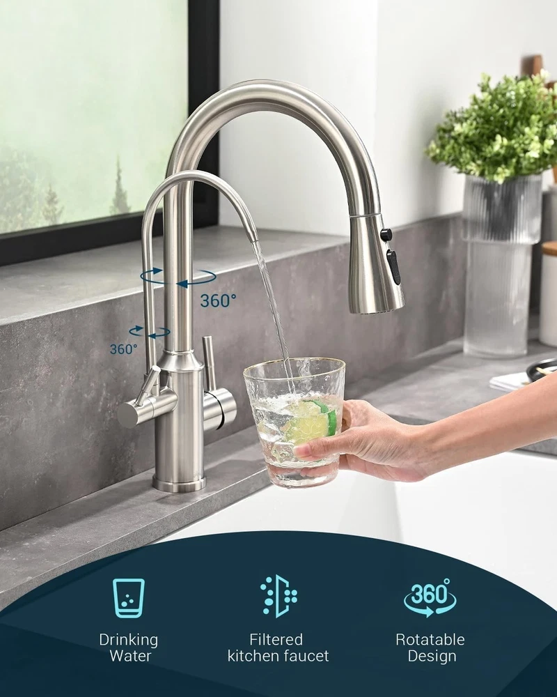 Modern Pull-Down Kitchen Faucet with Built-In Water Filter - Easy Installation ‹ › ‹ › ‹ › ‹ › ‹ › ‹ › ‹ › ‹ › ‹ › ‹ › Modern Pull-Down Kitchen Faucet with Built-In Water Filter Upgrade Your Kitchen Elevate your cooking space with the Modern Pull-Down Kitchen Faucet featuring a built-in water filter. This versatile 3-in-1 faucet seamlessly combines hot & cold water functions along with reverse osmosis (RO) water capabilities, offering a space-saving solution for contemporary kitchens. Key Features: ✨ Three-Function Sprayer: Effortlessly switch between regular water flow and powerful spray settings for thorough cleaning. 🔒 Water Filter: Enjoy peace of mind knowing that your drinking water is always clean, safe, and delicious. 🏗️ Premium Material: Built with durable stainless steel to resist corrosion, ensuring long-lasting reliability. 🖐️ Easy Pull-Down Design: Effortlessly fill pots or rinse dishes with a flexible pull-down sprayer that enhances everyday kitchen tasks. 🌟 Modern Aesthetic: A sleek design elevates your kitchen decor, enhancing both style and functionality. 🌀 Convenient Single Handle Operation: Easily control water temperature and flow with a single lever for added simplicity in your kitchen. Why You Should Choose This Faucet: Simplify your life with the all-in-one Modern Pull-Down Kitchen Faucet with Built-In Water Filter. This innovative faucet is not only about functionality but also about luxury; say goodbye to cluttered countertops with its streamlined design that offers hot & cold water, RO water, and purified water just a reach away. Experience elegance and efficiency with every use, enhancing your cooking experience while allowing you to maintain a clean and stylish kitchen environment. Upgrade today and transform the way you interact with your kitchen! Shipping Free & Fast Shipping - We offer free shipping to most of the USA with a normal delivery time of 3-10 businessdays. However, due to various situations, additional delivery time (up to 3 weeks) may be required for some items. Alternative Carriers - We may use alternative carriers (e.g. USPS, FedEx, UPS, etc.) to ensure your package arrives safely and on time. Due to the use of multiple carriers, we are unable to provide a tracking number automatically. Handling Time - Orders are processed and shipped within 1-5 business days of receiving cleared payment. Shipping Restrictions - Shipping to Alaska, Hawaii, Puerto Rico, Guam, and other US territories may incur shipping charges or delivery restrictions. Please contact us before ordering, or your order can be refunded/cancelled. State Restrictions - There may be restrictions based on your state of purchase. For example, certain items may not be shipped to California due to state regulations. Contact for Tracking Updates - If you require tracking updates or have any concerns about the delivery of your order, please feel free to contact us, and we will be happy to assist you. Return Please see our ebay return policy. We do not accept return on most products. This is to avoid customers mis-using ebay returns. All sales are final. Please be sure to check the return policy listed at the top of the listing. In rare cases, we may accept returns, if the buyer pays both ways shipping and 20% restocking fee. If you are un-sure of return policy of a particular item, please ask before buying. Payment We accept all major credit cards, PayPal, and Apple Pay for your convenience. Your payment information is secure and encrypted to ensure a safe and seamless transaction. Please complete your payment within 3 days of purchase to avoid any delays in shipping. Feedback Your feedback is extremely important to us. We strive to provide the best products and customer service possible. If you are satisfied with your purchase, please take a moment to leave us a positive review. If you have any concerns or issues with your order, please contact us before leaving negative feedback. We are committed to resolving any problems and ensuring your satisfaction. Contact Us If you have any questions or concerns, please feel free to reach out to our customer support team. You can contact us through the eBay messaging system. We are available Monday to Friday, 9:00 am to 5:00 pm EST, and we will do our best to respond to your inquiry within 24 hours. Buy it now and enjoy a pleasant shopping experience! UPC: Not Set Item Weight: 4.54 pounds Model: Not Set Unit Quantity: 1 Material: Stainless Steel Suitable For: Kitchen Sink,Kitchen Features: Pull-Out,Pull-Down Sprayer,Built-In Water Filter Labels & Certifications: Not Set Room: Kitchen Items Included: Instruction Manual Brand: Unbranded Type: Kitchen Faucet Finish: Brushed Number of Faucet Holes: 1 Color: Brushed Nickel Number of Faucet Handles: 1 Handle Type: Lever Faucet Mounting Type: Deck Mount Shape: High Arch Installation: Single Hole Item Height: Not Set Faucet Hole Spacing: 1 Item Width: Not Set Item Length: Not Set Spout Height: 10.5 Inches Manufacturer Warranty: Not Set MPN: Not Set Manufacturer: Not Set Product Line: Not Set Style: Modern Assembly Required: Not Set