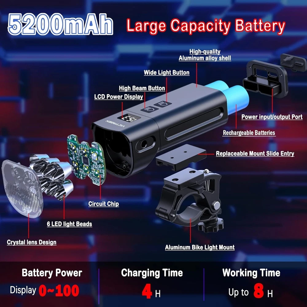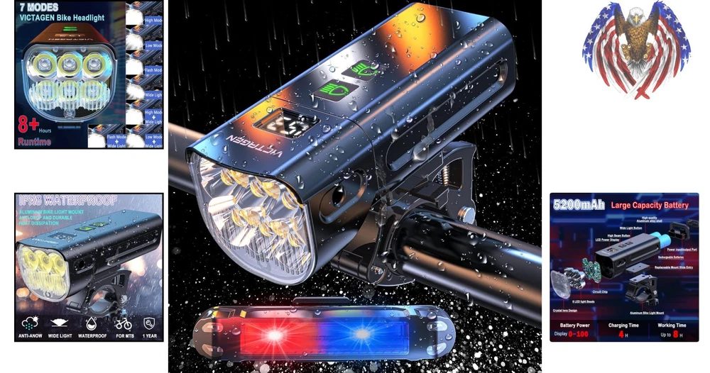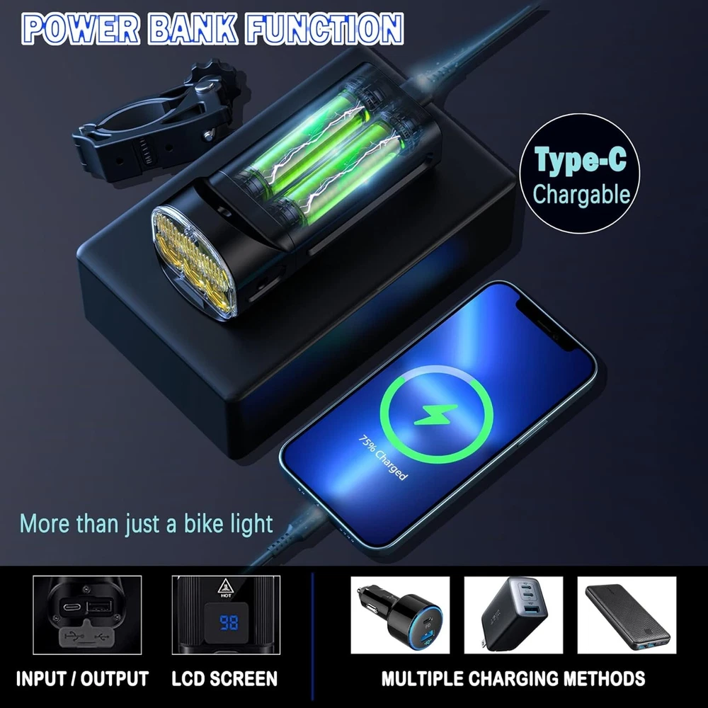 High-Performance 12000 Lumens Bike Lights - USB Rechargeable, IP65 Waterproof