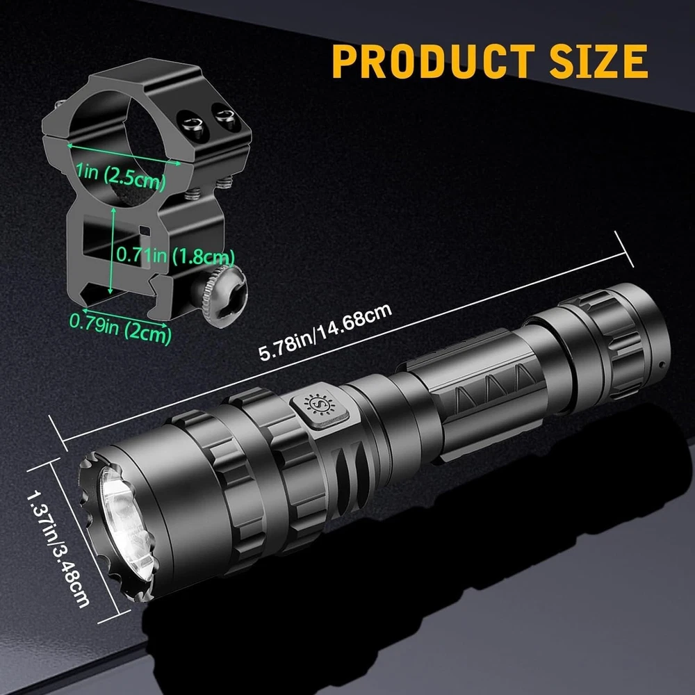 High-Performance Picatinny Flashlight - 3000 Lumens, Waterproof & Lightweight ‹ › ‹ › ‹ › ‹ › ‹ › ‹ › ‹ › ‹ › ‹ › ‹ › High-Performance Picatinny Flashlight Illuminate your surroundings with unmatched brilliance and versatility. Our tactical flashlight features: Powerful Brightness: Equipped with an advanced L2 LED bulb, delivering an extraordinary 3000 lumens of bright white light. Experience unmatched visibility that can illuminate up to 1800 feet, ensuring you see and be seen, even in the darkest conditions. 5 Versatile Lighting Modes: Adapt to any situation with 5 lighting modes—High, Medium, Low, Strobe, and SOS. Customize your illumination based on your needs, whether for tactical scenarios or casual use. Two Convenient Switches: Featuring a dual-tail switch design — one button switch for easy cycling through modes, and a pressure switch for instant illumination. Instant access to light at your fingertips. USB Rechargeable: Stay powered up with a Type-C fast charging port. Recharge conveniently from your computer, power bank, or car charger. The indicator light provides clear charging status, turning green when fully charged. Easy Mounting: Effortlessly attach or detach using the included Picatinny rail mount. It comes with an Allen wrench and screws for seamless installation. Built to Endure: Constructed from aircraft-grade aluminum alloy with a durable anodized matte finish, this flashlight is designed to withstand the toughest conditions. IP65 waterproof rating ensures reliable performance even in heavy rain or snow. Widely Applicable: Perfect for a multitude of activities - from tactical operations, night walking, camping, hiking, to emergency lighting. This flashlight is the ultimate companion in both everyday situations and adventurous excursions. Why Choose Our High-Performance Picatinny Flashlight? When visibility is paramount, this flashlight exceeds expectations with its stunning brightness and robust feature set. The combination of a lightweight design and heavy-duty construction ensures that whether you’re on a night mission or a camping trip, you’ll always have the light you need, when you need it. Your Light, Your Adventure — Order Today! Shipping Free & Fast Shipping - We offer free shipping to most of the USA with a normal delivery time of 3-7 days. However, due to the current situation, additional delivery time (up to 3 weeks) may be required for some items. Alternative Carriers - We may use alternative carriers (e.g. USPS, FedEx, UPS, etc.) to ensure your package arrives safely and on time. Due to the use of multiple carriers, we are unable to provide a tracking number automatically. Handling Time - Orders are processed and shipped within 1-2 business days of receiving cleared payment. Shipping Restrictions - Shipping to Alaska, Hawaii, Puerto Rico, Guam, and other US territories may incur shipping charges or delivery restrictions. Please contact us before ordering, or your order can be refunded/cancelled. State Restrictions - There may be restrictions based on your state of purchase. For example, certain items may not be shipped to California due to state regulations. Contact for Tracking Updates - If you require tracking updates or have any concerns about the delivery of your order, please feel free to contact us, and we will be happy to assist you. Return 30-Day Hassle-Free Returns - We want you to be completely satisfied with your purchase. If you are not, you can return the item within 30 days of receiving it for a full refund or exchange. Easy Return Process - To start a return, simply contact us and we will provide you with a prepaid return shipping label and detailed instructions. Restocking Fee - There are no restocking fees for returns. However, the buyer is responsible for return shipping costs if the return is not due to a seller's error. Refund Processing Time - Refunds will be processed within 5 business days of receiving the returned item in its original condition. Payment We accept all major credit cards, PayPal, and Apple Pay for your convenience. Your payment information is secure and encrypted to ensure a safe and seamless transaction. Please complete your payment within 3 days of purchase to avoid any delays in shipping. Feedback Your feedback is extremely important to us. We strive to provide the best products and customer service possible. If you are satisfied with your purchase, please take a moment to leave us a positive review. If you have any concerns or issues with your order, please contact us before leaving negative feedback. We are committed to resolving any problems and ensuring your satisfaction. Contact Us If you have any questions or concerns, please feel free to reach out to our customer support team. You can contact us through the eBay messaging system. We are available Monday to Friday, 9:00 am to 5:00 pm EST, and we will do our best to respond to your inquiry within 24 hours. Thank you for supporting our small family business! UPC: Not Set Voltage: 5 volts (dc) Item Height: Tactical Flashlight Item Length: Tactical Flashlight Item Weight: 11.99 ounces Item Width: Not Set Model: Not Set Lumens: 3000 Number of LEDs: 1 Unit Quantity: 1 Features: Batteries Included,Clip On,Handheld,Rechargeable,Waterproof,With Wrist Strap Material: Aluminum,Aircraft-grade aluminum alloy Brand: Unbranded Type: Flashlight Lighting Technology: LED Power Source: Battery Operating Range: 1800 feet MPN: Not Set Battery Technology: Li-Ion Number of Batteries: 1 Color: Black Country/Region of Manufacture: Not Set IP Rating: IP65 Operating Time: More Than 10 Hours Number of Lights: 1-3 Unit Type: oz Personalize: Not Set
