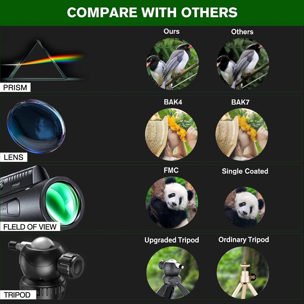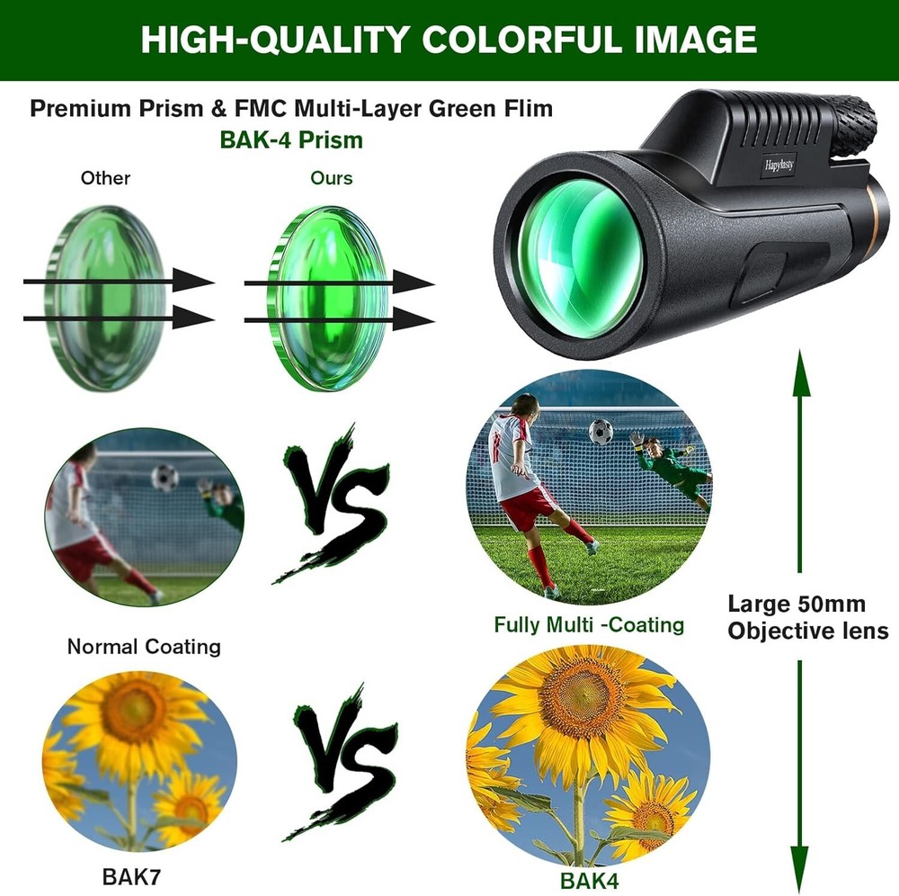 HD 12x50 Monocular with Fully Multi-Coated Lens & Easy Focus for Bird Watching ‹ › ‹ › ‹ › ‹ › ‹ › ‹ › ‹ › ‹ › ‹ › ‹ › HD 12x50 Monocular Your Ultimate Companion for Bird Watching and Beyond! Key Features: 12× Magnification & 50mm Objective Lens - Experience bright and clear images with a diverse field of view, perfect for hiking, hunting, climbing, bird watching, concert-going, travel, and scenic exploration. Higher Definition & BAK-4 Prism - Equipped with the latest optical technology including a BAK-4 prism and fully multi-coated lens, resulting in sharper and clearer images, allowing you to capture the beauty of nature effortlessly. Smartphone Holder & Upgraded Steady Tripod - Comes complete with a versatile smartphone holder compatible with most phones, paired with a stable adjustable tripod to ensure your photos and videos are shake-free, enhancing your outdoor experience. Single Hand Focus & IPX7 Waterproof - Designed for your convenience, the single hand-adjust focus wheel allows for swift adjustments to capture stunning views. Its robust waterproof and anti-fog design guarantees clarity in all weather conditions. Ideal Gifts for All - A perfect gift for adventurers of any age, from dads to kids; suitable for birthdays, Christmas, Thanksgiving, Valentine’s, and more. Enjoy peace of mind with a 60-day money-back guarantee and dedicated lifetime customer support. Benefits: Experience nature like never before with high-quality optics that bring distant sights into sharp focus. Lightweight and compact design for easy portability, making it the ideal choice for outdoor enthusiasts. Capture memorable moments effortlessly and share them with loved ones, enhancing every adventure. Adjustable eye-cups accommodate users with or without eyeglasses for maximum comfort. Why Choose Our HD 12x50 Monocular? Are you seeking a lightweight yet powerful tool to elevate your outdoor experiences? Our HD 12x50 Monocular stands out with its exceptional optical performance, user-friendly design, and durable construction. Whether you’re hiking through mountain trails or enjoying a concert, this monocular ensures that no detail is missed. Don't wait—embrace the wonder of the natural world and capture every moment in stunning detail. Order your HD 12x50 Monocular today and embark on your next adventure with confidence! Shipping Free & Fast Shipping - We offer free shipping to most of the USA with a normal delivery time of 3-7 days. However, due to the current situation, additional delivery time (up to 3 weeks) may be required for some items. Alternative Carriers - We may use alternative carriers (e.g. USPS, FedEx, UPS, etc.) to ensure your package arrives safely and on time. Due to the use of multiple carriers, we are unable to provide a tracking number automatically. Handling Time - Orders are processed and shipped within 1-2 business days of receiving cleared payment. Shipping Restrictions - Shipping to Alaska, Hawaii, Puerto Rico, Guam, and other US territories may incur shipping charges or delivery restrictions. Please contact us before ordering, or your order can be refunded/cancelled. State Restrictions - There may be restrictions based on your state of purchase. For example, certain items may not be shipped to California due to state regulations. Contact for Tracking Updates - If you require tracking updates or have any concerns about the delivery of your order, please feel free to contact us, and we will be happy to assist you. Return 30-Day Hassle-Free Returns - We want you to be completely satisfied with your purchase. If you are not, you can return the item within 30 days of receiving it for a full refund or exchange. Easy Return Process - To start a return, simply contact us and we will provide you with a prepaid return shipping label and detailed instructions. Restocking Fee - There are no restocking fees for returns. However, the buyer is responsible for return shipping costs if the return is not due to a seller's error. Refund Processing Time - Refunds will be processed within 5 business days of receiving the returned item in its original condition. Payment We accept all major credit cards, PayPal, and Apple Pay for your convenience. Your payment information is secure and encrypted to ensure a safe and seamless transaction. Please complete your payment within 3 days of purchase to avoid any delays in shipping. Feedback Your feedback is extremely important to us. We strive to provide the best products and customer service possible. If you are satisfied with your purchase, please take a moment to leave us a positive review. If you have any concerns or issues with your order, please contact us before leaving negative feedback. We are committed to resolving any problems and ensuring your satisfaction. Contact Us If you have any questions or concerns, please feel free to reach out to our customer support team. You can contact us through the eBay messaging system. We are available Monday to Friday, 9:00 am to 5:00 pm EST, and we will do our best to respond to your inquiry within 24 hours. Buy it now and enjoy a pleasant shopping experience! UPC: Not Set Model: Not Set Unit Quantity: 1 Item Weight: 1.3 lb Item Height: Not Set Item Length: Not Set Item Width: Not Set Application: Birding,General Purpose,Hunting,Hiking,Climbing,Fishing,Travel,Watching Scenery,Ball Games,Concerts Features: Waterproof,High Power Magnification,Clear Low Light Vision,Anti-Fog Coating,Smartphone Adapter,Upgraded Tripod,Single Hand Focus,Adjustable Eye-Cups Brand: Unbranded Type: Monoculars Maximum Magnification: 12x Size: Compact Objective Lens Diameter: 50 mm MPN: Not Set Unit Type: lb Country/Region of Manufacture: Not Set Optical Design: Roof/Dach Prism Lens Coating: Fully Multi-Coated Color: Black Manufacturer Warranty: Not Set