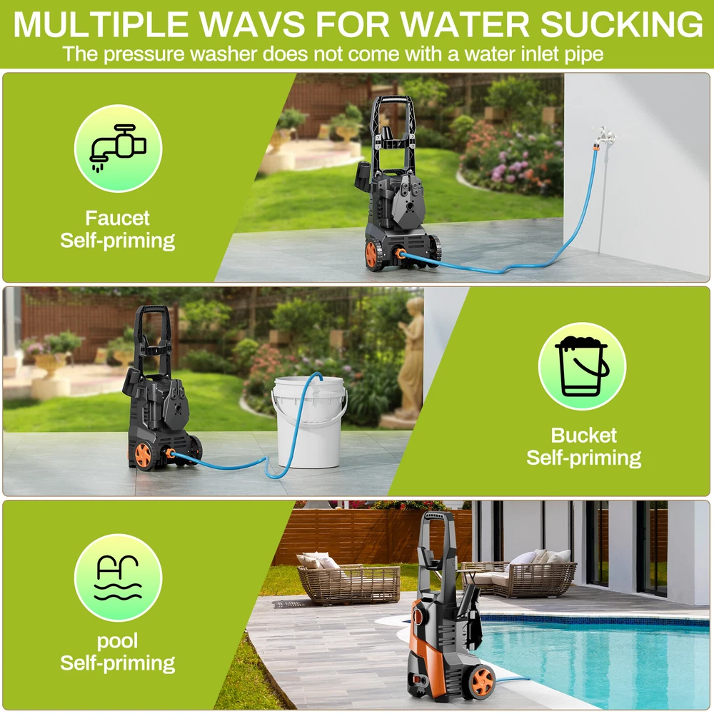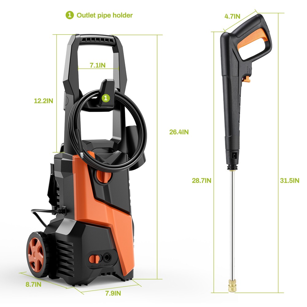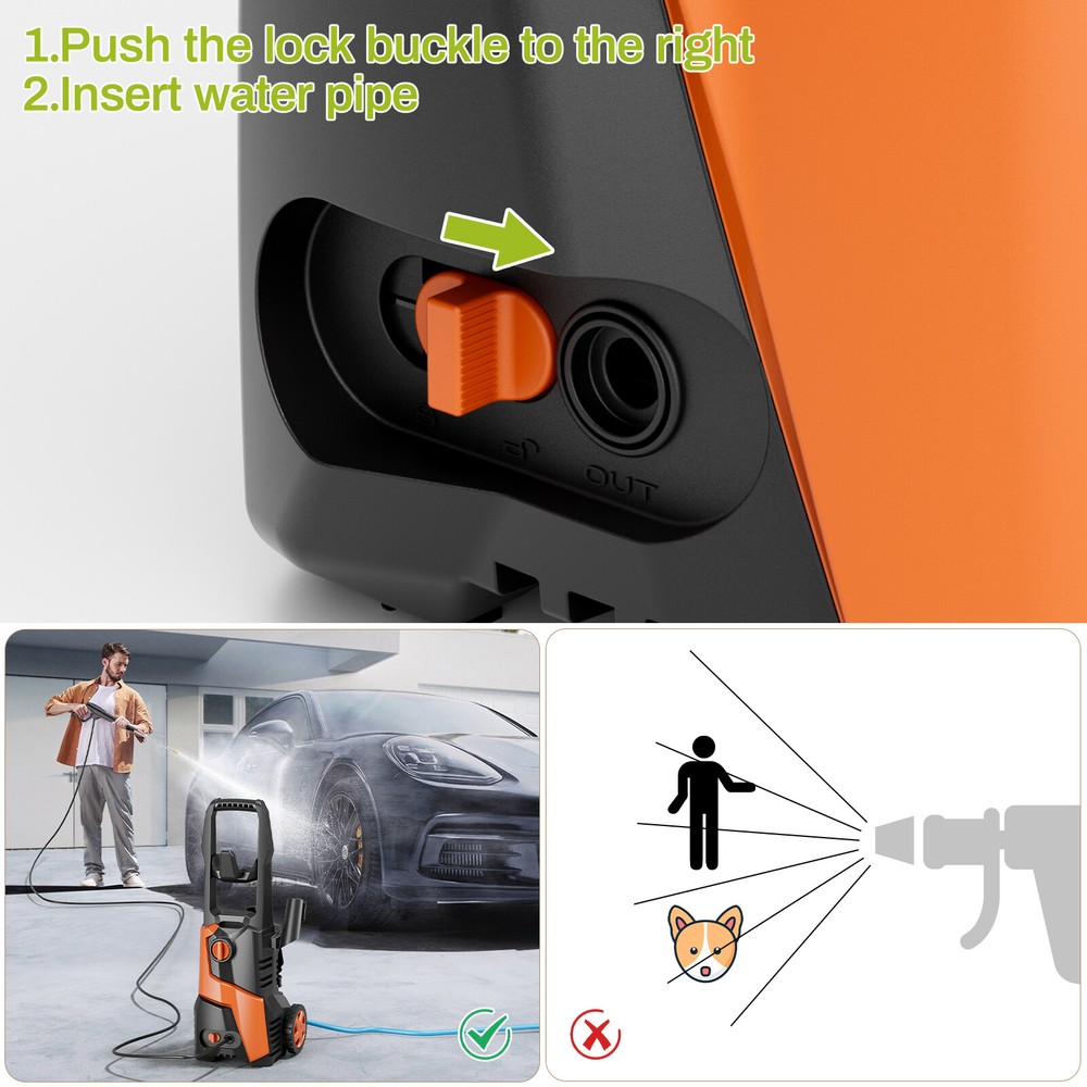 Description: Yiwsz-0 Your Best Online Business Partner Electric Pressure Washer, Power Cleaning Machine W/Anti-Tipping Technology, 4-Nozzle Set, Foam Cannon, Outlet Hose, 2700 PSI Max, 1.7 GPM Max, for Cars, Fence, Window, Patio, Home, Bicycle Description: DURABLE PRESSURE WASHER: Electric pressure washer boasts a maximum water pressure of 2700 PSI and a flow rate of 1.7 GPM, tackling stubborn stains and tough dirt easily. Equipped with a copper core motor, power washer consistent power and reliability, ensuring a long service life LARGE AREA CLEANING: Portable power washer comes with a 16FT power cord and a 23FT high-pressure water hose. Roller design for easy movement. There are many ways to get water, including taps, buckets, and swimming pools, breaking through environmental restrictions FOUR NOZZLES WITH DIFFERENT PRESSURES: High pressure cleaner has 4 nozzles (water pressure strength: 0°>15°>25°>40°) and a 500 ML foam cannon, suitable for different cleaning scenarios. Foam tank can be used to clean cars and bicycles ANTI-TILT DESIGN FOR EASY STORAGE: Bottom of high pressure washer has an anti-tilt design, it can be placed stably on the ground. High pressure washer dimensions: 12in×11in×17.8in, weight 16LBS, compact design for easy storage SAFETY FEATURES: High pressure cleaning machine has leakage protection device and overheat protection. Trigger has a safety buckle, automatically shuts off pump and power when trigger is not engaged. High pressure water hose is IPX5, with safety performance Specification: Length: 8in Width: 8.7in Height: 26.4in Weight: 16 LBS Water Pressure: 2700 MAX PSI Water Flow: 17 MAX GPM Power: 1800W Safety features: Prevent overheating Leakage protection device Handle safety buckle TSS (Total Stop System): automatically shuts off the pump and power when the trigger is not engaged to save energy and prolong pump life Waterproof: High pressure water hose has IPX5 protection Notes: 1. Do not use on people or animals 2. For safe use, please clean the device every three months. Before use, please check the filter and nozzle to ensure there are no impurities. After use, please make sure there is no water in the pump and hose. Item Specifics Type Electric Pressure Washer Brand Unbranded Power Source Corded Electric Maximum Pressure 2700 psi Features Anti-Tipping Color Green Country/Region of Manufacture China Item Height 26.4 in Item Length 8 in Item Width 8.7 in Item Weight 16 LBS Payment We only accept Payoneer payment. Shipping We will ship out your item within 24-48 business hours after payment received; We don't process orders on weekends and holidays. Returns 30 day returns. Full / Partial Money Back, or Replacement. Contact Us If you have ANY problems, please feel free to let us know, we'll get back to you ASAP and do our bets to resolve it. Yiwsz-0 Your Best Online Business Partner DESCRIPTION PAYMENT SHIPPING RETURN POLICY CONTACT US Store Category Store Home Kids Slide Garbage Can Indoor Furniture Fitness Home & Garden Hot Item Electric Pressure Washer with Hose & 4 Nozzles High Power Cleaner for Car, Patio USD 69.99 Electric Pressure Washer High Pressure Cleaner W/ Telescopic Handle & 4 Nozzles USD 89.99 Electric Pressure Washer W/ Telescopic Handle High Pressure Cleaner for Cars USD 89.99 Electric Pressure Washer High Power Cleaner with Hose & 4 Nozzles for Car, Patio USD 69.99 New List Item 3in1 Activity Craft Table & Chairs Set Kid Wooden Drawing Table Set W/ Art Easel USD 159.99 Wagon Folding Cart Collapsible Garden Beach Utility Outdoor Camping Sports Black USD 39.99 Heavy-Duty Steel Hammock Stand for 2-3 People 550LBS Capacity for Indoor Outdoor USD 119.99 Inflatable Bounce Houses for Kids with Splash Pool & Water Gun & Basketball USD 319.99 Collapsible Wagon Cart Portable Utility Wagon Camping, Beach Cart w/ 360° Wheels USD 39.99 Help & Info Payment Policy Shipping Policy Return Policy FAQ About Us Electric Pressure Washer, Power Cleaning Machine W/Anti-Tipping Technology, 4-Nozzle Set, Foam Cannon, Outlet Hose, 2700 PSI Max, 1.7 GPM Max, for Cars, Fence, Window, Patio, Home, Bicycle Description: DURABLE PRESSURE WASHER: Electric pressure washer boasts a maximum water pressure of 2700 PSI and a flow rate of 1.7 GPM, tackling stubborn stains and tough dirt easily. Equipped with a copper core motor, power washer consistent power and reliability, ensuring a long service life LARGE AREA CLEANING: Portable power washer comes with a 16FT power cord and a 23FT high-pressure water hose. Roller design for easy movement. There are many ways to get water, including taps, buckets, and swimming pools, breaking through environmental restrictions FOUR NOZZLES WITH DIFFERENT PRESSURES: High pressure cleaner has 4 nozzles (water pressure strength: 0°>15°>25°>40°) and a 500 ML foam cannon, suitable for different cleaning scenarios. Foam tank can be used to clean cars and bicycles ANTI-TILT DESIGN FOR EASY STORAGE: Bottom of high pressure washer has an anti-tilt design, it can be placed stably on the ground. High pressure washer dimensions: 12in×11in×17.8in, weight 16LBS, compact design for easy storage SAFETY FEATURES: High pressure cleaning machine has leakage protection device and overheat protection. Trigger has a safety buckle, automatically shuts off pump and power when trigger is not engaged. High pressure water hose is IPX5, with safety performance Specification: Length: 8in Width: 8.7in Height: 26.4in Weight: 16 LBS Water Pressure: 2700 MAX PSI Water Flow: 17 MAX GPM Power: 1800W Safety features: Prevent overheating Leakage protection device Handle safety buckle TSS (Total Stop System): automatically shuts off the pump and power when the trigger is not engaged to save energy and prolong pump life Waterproof: High pressure water hose has IPX5 protection Notes: 1. Do not use on people or animals 2. For safe use, please clean the device every three months. Before use, please check the filter and nozzle to ensure there are no impurities. After use