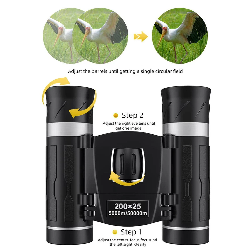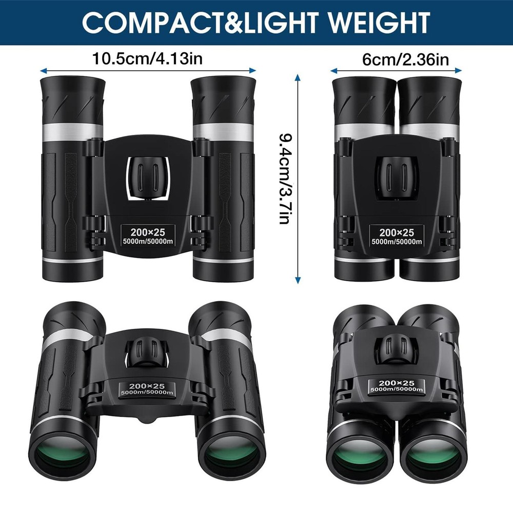 Compact Binoculars Gift High Powered, Waterproof Bird Watching Hunting 200X25 HD Field of View: High power with 200X magnification and 25mm large field of view, compact binoculars let you observe and focus on target details from 1000 yards away. Easy-to-Focus Binoculars: These portable binoculars are very easy to focus and use, just adjust it to the right position according to your eyes, and then rotate the center wheel. Anti-slip and Anti-Sweat: With anti-slip and anti-sweat functions, our mini binoculars feel comfortable in the hand, allowing you to use them for a long time without feeling tired. Portable Design: The bird-watching binocular has a lightweight design, which is compact and does not take up space, making it easy to carry on outdoors. Wide Application: Our binoculars are suitable for adults and kids, perfect for bird watching, camping, climbing, hiking, safari, traveling, attending sporting events, and more. Features: 1. High power with 200X magnification and 25mm large field of view. 2. FMC coating technology, the image is bright and clear, and the observation is comfortable. 3. The central focusing wheel is sensitive and non-slip, easy to focus. 4. Compact palm size and weight, comfortable hand feeling, non-slip and sweat-proof. 5. Suitable for adults and children for bird watching, camping, mountaineering, etc. Specification: Product Name: Compact Binoculars Material: ABS+rubber Prism material: BAK4 Dimensions: About 94*105*40mm/3.7*4.13*1.57in Product List: Compact Binoculars *1 Notes: 1. Due to the different monitor and light effects, the actual color of the item might be slightly different from the color which is shown in the pictures. 2. Please forgive a slight measuring deviation due to manual measurement. 1.You can make a Credit payment via Paypal.Paypal will let you use MasterCard,Visa to pay. 2.Payment should be completed within 5 days after auction closed, or unpaid dispute will be filed for an closing auction.An unpaid case will be filled after 4 days. ● We strive for 100% customer satisfaction ! ● Positive Feedback is very important to us. ● We hope that you contact us immediately BEFORE you give us neutral or negative feedback, so that we can satisfactorily address your concerns. ● We promise to offer the lowest price and high quality produce. Dear buyers : ● Welcome to my store ! ● Your satisfaction is our top goal,we appreciate your patronizing. ● If you have any questions, please contact us before leave negative or neutral feedback, we will try our best to solve the issue to your satisfaction, thanks ! ● If you are satisfied with our service, please rate the details of the transaction (Detailed Seller Ratings) on eBay. ● Please always talk to us via ebay Message. ● We appreciate your business and look forward to growing our e-Bay sales with satisfied customers.