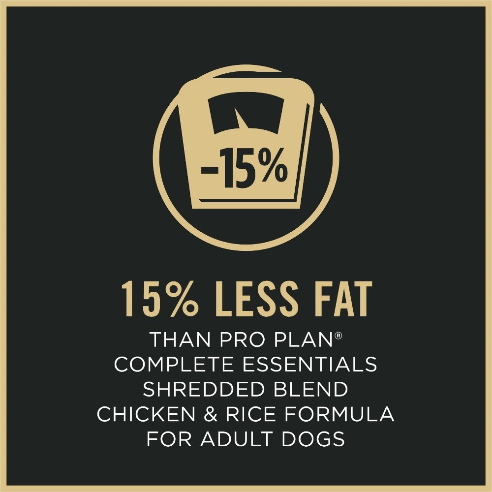 Support your dogs weight management goals with Weight Management Dry Dog Food, Shredded Chicken and Rice. This high-protein dry dog food is crafted to help maintain lean muscle mass while providing a taste dogs love, thanks to real chicken dog food as the first ingredient. The unique shredded dog food blend combines crunchy kibble with tender, meaty pieces, creating a texture dogs enjoy. With 15 percent less fat than dog food, this healthy weight dog food offers a balanced approach to weight management without compromising on flavor or nutrition. Fortified with live dog probiotics, this dog food supports digestive and immune health, helping to nourish a balanced gut microbiome. A precise blend of fiber and key nutrients helps promote satiety, keeping dogs feeling satisfied between meals. This dog food healthy weight formula provides complete and balanced nutrition, ensuring your dog gets essential vitamins and minerals to support overall well-being. Designed for adult dog food, dog food includes high-quality protein to support muscle maintenance while delivering a wholesome meal. Whether your dog needs to shed a few pounds or maintain an ideal body condition, this weight management dog food helps support an active lifestyle. Choose Weight Management Dry Dog Food, Shredded Chicken and Rice to give your dog the nutrition he needs to stay strong, healthy, and happy Weight Management Dry Dog Food supports healthy weight maintenance with high-quality ingredients. Shredded dog food formula combines crunchy kibble and tender pieces for a texture dogs love. Made with real chicken dog food as the first ingredient to provide high-quality protein for lean muscle support. Fortified with dog probiotics to promote digestive and immune health. Spoil your pet with products. Reward yourself with points on every purchase. Download the my app today.