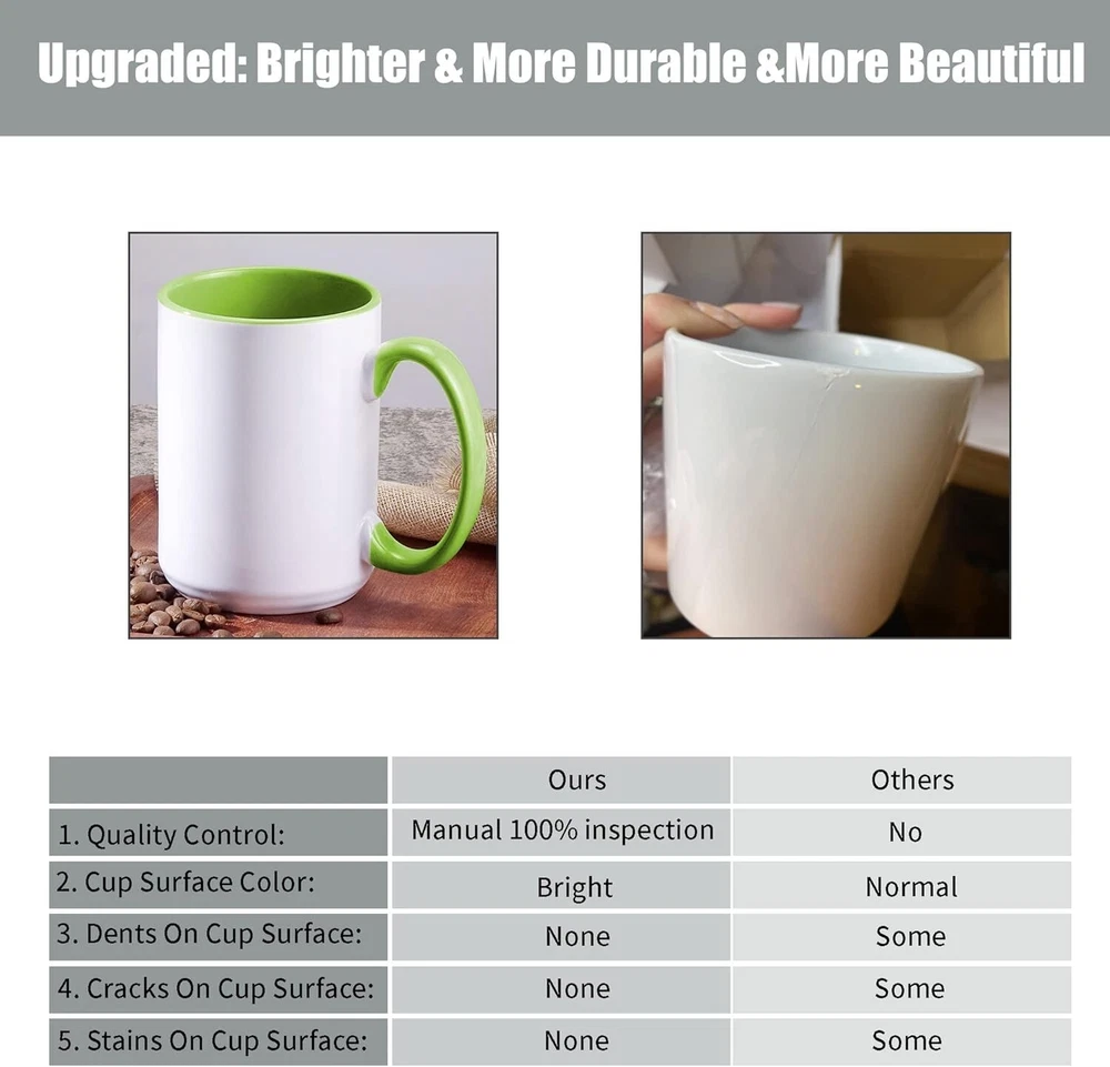 High-Quality 15 oz Ceramic Coffee Mugs Set of 12 - Ideal for DIY Projects ‹ › ‹ › ‹ › ‹ › ‹ › ‹ › ‹ › ‹ › ‹ › ‹ › High-Quality 15 oz Ceramic Coffee Mugs Set of 12 Transform your coffee experience with our exceptional set of 12 high-quality ceramic sublimation mugs. Designed for durability and elegance, these mugs are perfect for both personal enjoyment and creative projects. Features: High-quality 15 oz ceramic mugs, designed for long-term use. Exceptional sublimation coating that provides a bright white finish with high-density colors. Resistant to dishwasher wear, ensuring beautiful designs remain intact. Safe for use in the oven, microwave, freezer, and dishwasher. Dimensions: Height: 12cm (4.7 inches), Width: 8.5cm (3.3 inches). Each set includes 12 mugs in six vibrant colors (2 of each): white, black, orange, pink, sage green, and navy blue. Benefits: Versatile size perfect for various hot and cold beverages. Ideal for DIY projects, customization, and personal keepsakes. Great for special occasions, such as graduations and weddings. Enhance your events with personalized designs, perfect for gifts and promotions. Every mug promises functionality combined with an artistic touch. Why choose our Mug Set? Whether you're a coffee connoisseur or searching for the perfect canvas for your next creative project, our High-Quality Ceramic Coffee Mugs deliver unparalleled quality and style. With their stunning exterior designs and customizable features, they are ideal for both home use and professional settings. Use them at cafes, restaurants, or as outdoor companions during camping. Your imagination is your only limit! Craft memorable keepsakes, promote your brand, or simply enjoy a morning coffee in style. Enjoy exceptional quality and vibrant colors that last, making every sip a delight. Order now and unlock the endless possibilities of creativity with our exquisite mug set! Shipping Free & Fast Shipping - We offer free shipping to most of the USA with a normal delivery time of 3-7 days. However, due to the current situation, additional delivery time (up to 3 weeks) may be required for some items. Alternative Carriers - We may use alternative carriers (e.g. USPS, FedEx, UPS, etc.) to ensure your package arrives safely and on time. Due to the use of multiple carriers, we are unable to provide a tracking number automatically. Handling Time - Orders are processed and shipped within 1-2 business days of receiving cleared payment. Shipping Restrictions - Shipping to Alaska, Hawaii, Puerto Rico, Guam, and other US territories may incur shipping charges or delivery restrictions. Please contact us before ordering, or your order can be refunded/cancelled. State Restrictions - There may be restrictions based on your state of purchase. For example, certain items may not be shipped to California due to state regulations. Contact for Tracking Updates - If you require tracking updates or have any concerns about the delivery of your order, please feel free to contact us, and we will be happy to assist you. Return 30-Day Hassle-Free Returns - We want you to be completely satisfied with your purchase. If you are not, you can return the item within 30 days of receiving it for a full refund or exchange. Easy Return Process - To start a return, simply contact us and we will provide you with a prepaid return shipping label and detailed instructions. Restocking Fee - There are no restocking fees for returns. However, the buyer is responsible for return shipping costs if the return is not due to a seller's error. Refund Processing Time - Refunds will be processed within 5 business days of receiving the returned item in its original condition. Payment We accept all major credit cards, PayPal, and Apple Pay for your convenience. Your payment information is secure and encrypted to ensure a safe and seamless transaction. Please complete your payment within 3 days of purchase to avoid any delays in shipping. Feedback Your feedback is extremely important to us. We strive to provide the best products and customer service possible. If you are satisfied with your purchase, please take a moment to leave us a positive review. If you have any concerns or issues with your order, please contact us before leaving negative feedback. We are committed to resolving any problems and ensuring your satisfaction. Contact Us If you have any questions or concerns, please feel free to reach out to our customer support team. You can contact us through the eBay messaging system. We are available Monday to Friday, 9:00 am to 5:00 pm EST, and we will do our best to respond to your inquiry within 24 hours. Buy it now and enjoy a pleasant shopping experience! UPC: Not Set Unit Quantity: 12 Set Includes: Coffee Mug,Sublimation Blank Theme: Not Set Material: Ceramic Features: Dishwasher Safe,Freezer Safe,Microwave Safe,Oven-Safe Occasion: All Occasions,Graduation,Weddings,Promotions,Art Displays Character: Not Set Type: Sublimation Mug Set Brand: Unbranded Color: Multicolor Pattern: Not Set Capacity: 15 fl oz MPN: Not Set Shape: Round Number of Items in Set: Twelve-Piece Service For: More Than 8 Style: Modern Character Family: Not Set Item Height: Not Set Item Weight: 12 lb Item Width: Not Set Manufacturer Warranty: Not Set Model: Not Set Unit Type: lb Country/Region of Manufacture: Not Set Personalize: Not Set