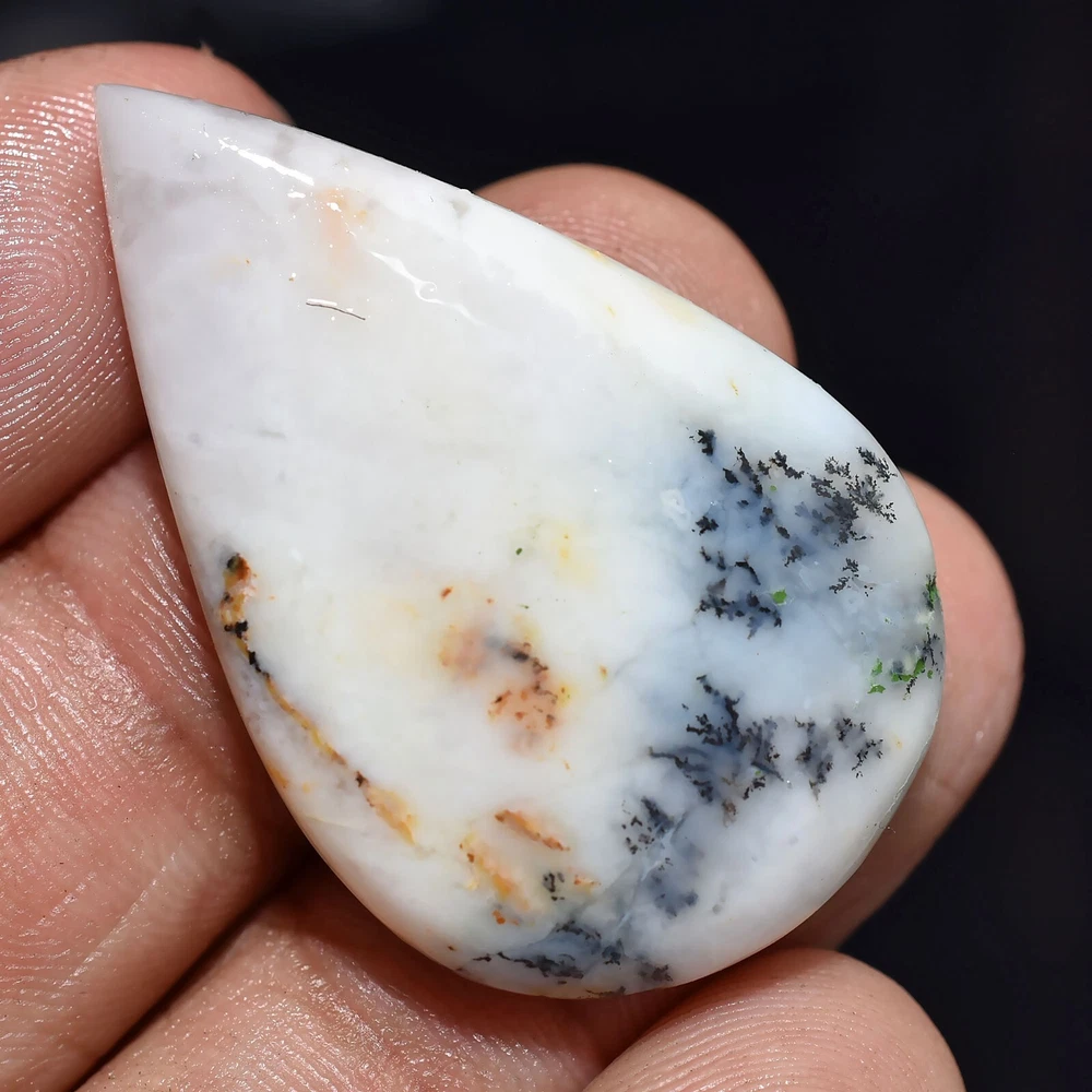 Gemstone Form: Polished Gemstone Type: Dendrite Opal Country of Origin: Australia Cut Grade: Excellent Gemstone Treatment: Not Enhanced Gemstone Color: White Country/Region of Manufacture: India Gemstone Shape: Pear Gemstone Creation: Natural