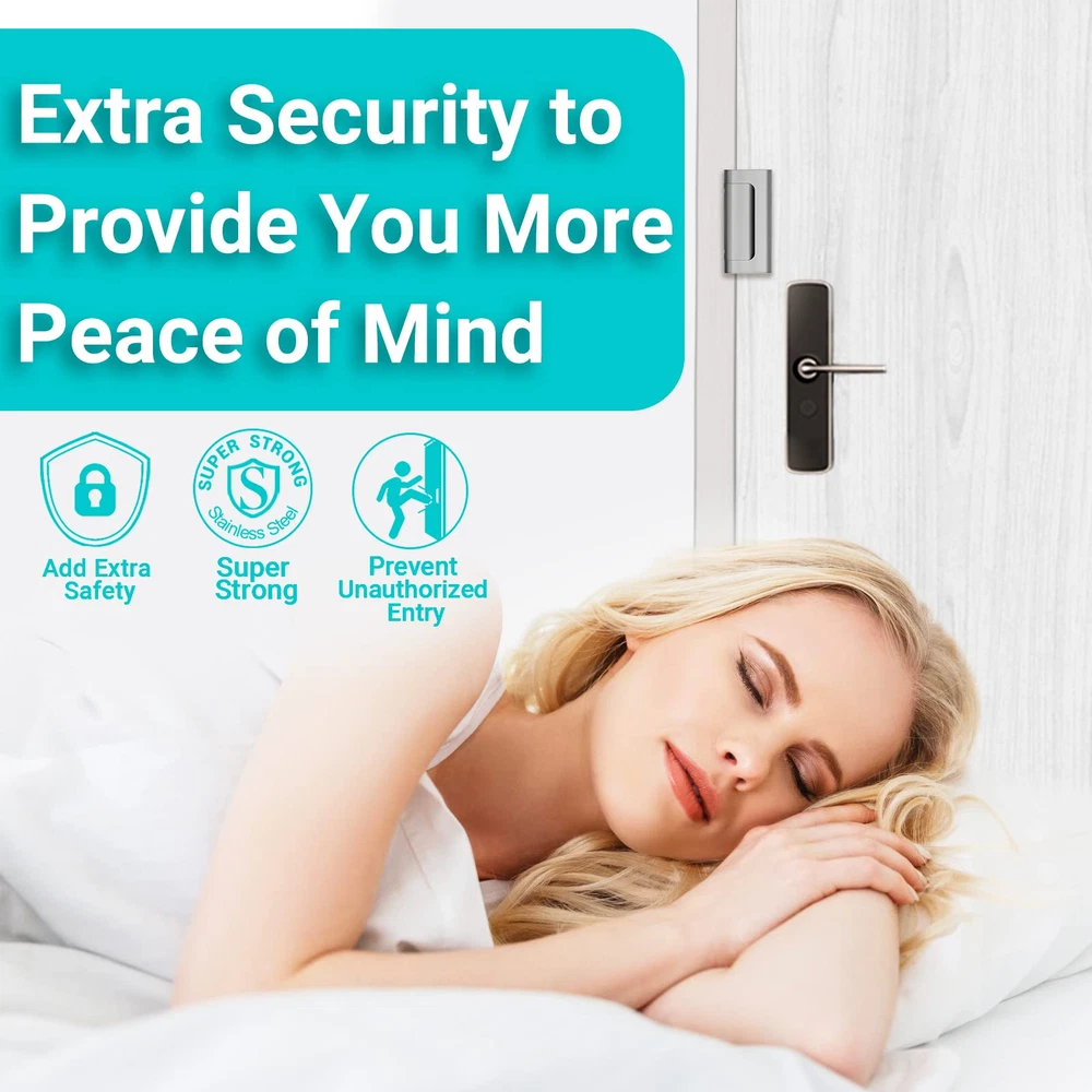 Designed for Doors that Open Inward, Please Check Before Purchase: front door lock is specifically designed for doors that open inward such as front and back door, balcony door, bedroom, backdoor, and even apartment door. It's not suitable for the apartment door if the type follows: Door seam is less than 0.07", slat door, double door, the door frame is too large, or the door opening outward. door reinforcement lock provides privacy while increases your family and home security Keep Your Home Safe, Prevent Unauthorized Entry, and Provide You with Peace of Mind: security door locks are designed to withstand 800 lbs. of force, 12 times stronger than a normal deadbolt against being kicked in. Adding high security door lock for front door security, door inside, bedroom door security lock, side and garage doors and basement doors makes you feel more at ease and more secure in your home Improved Groove and Sign Design, Easier to Operate in an Emergency: Place your index finger and thumb on the home security door lock to pinch both the top and bottom grooves, and slide lock away from the base plate along the door in the direction of the hinges, then pull outward to open the lock. Reverse the actions to close. flip lock for door upgrade groove design allows easier to open in case of emergency Perfect for Women Live Alone, Elders, Family with Tollders and Pet: If you want feel secure and piece of mind with a toddler that can now easily open doors, or stop a highly intelligent furry friends that figured out how to turn door knobs, sturdy front door safety lock for kids is no doubt your perfect choice. The door safety lock is also ideal for elders or women who live alone to feel safer. Absolutely apartment and home security Essential door lock Easy to Install: Use power screwdriver and drill to mount security door lock on your door frame, finish DIY, the installation is less than 5 minutes! reinforcement door lock is equipped with 4*1" scews and 4* 2" scews, the length of the screw can be selected as needed Worry-Free Purchase: Secure home by , door reinforcement lock defend your home safe, not only prevent break-in, but also easy open from inside when meet urgent. top lock for front door provide considerate service to make sure you could buy with confidence and would try our best to solve any problem until you are satisfied