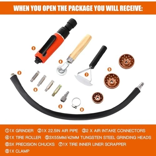 Return Policy Fast Delivery Trusted seller Air Tire Repair Polish Patch Tools Tire Repair Set Include 2500rpm Low Speed Air Tire Buffer Tire Inner Liner Scrapper Patch Roller 3pcs Tungsten Steel Buffing Wheel 42mm 55mm Product Description Packaging Includes: you will receive 1 pcs grinder, 1 pcs 8.07 inches/ 20.5 cm air pipe, 2 pcs intake connectors, 1 pcs 1.65 inches/ 42 mm tungsten steel grinding head, 2pcs 2.17 inches/ 55 mm tungsten steel grinding head, 3 pcs precision chucking, 1pcs tire roller, 1pcs tire lining scraper, a combination package for your daily use Reliable Materials: our tire repair kit is made of durable tungsten carbide material, which has abrasion resistance and pressure resistance, is not easy to rust and corrosion resistance, and is suitable for grinding and polishing of tires, rubber products and other materials Beautiful Design: this product is equipped with tungsten steel polishing wheel head, durable, easy to replace, supporting 3 precision chuck, easy to install and disassemble, easy to replace, pneumatic polishing tools with muffler tube, reduce exhaust noise, rear ventilation design can avoid direct blowing Easy to Use: this product is equipped with a plate switch, simple and easy to operate, the rear side of the product is equipped with a speed adjustment switch, which can be adjusted with a straight head screwdriver; Speeds range from 0 RPM to 2500 RPM Widely Applicable: we offer quality tire rollers and tire inner tube scrapers, both of which can help with tire maintenance, mainly operated by compressed air driven polishing machine; These products can not only be used for tire maintenance, but also for the grinding and polishing of rubber products, hardware crafts, stone and other materials Shipping Returns Payment Shipping Shipping is FREE to all addresses other than APO/PO boxes in the lower 48 states. All our stock ships from US-based warehouses. Shipped via USPS or UPS (depending on location and package weight) Unless stated otherwise, all orders will ship within 24-72 hours of your payment being processed. Check our feedback to see the great reviews of FAST shipping we offer. Returns Seller does not accept returns Payment We currently accept payment via eBay managed payments only. Once payment is cleared, we will dispatch your shipment within 1-3 business days. Please refer to the "Shipping" tab for more information regarding shipping speed to your destination.